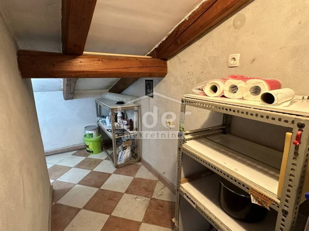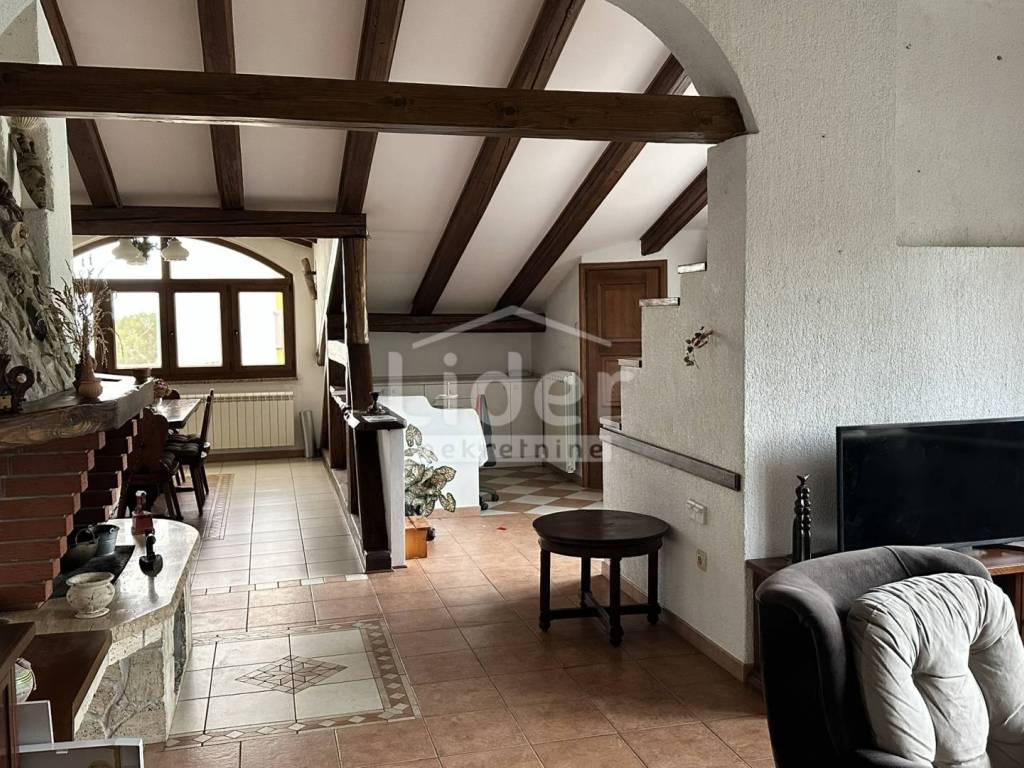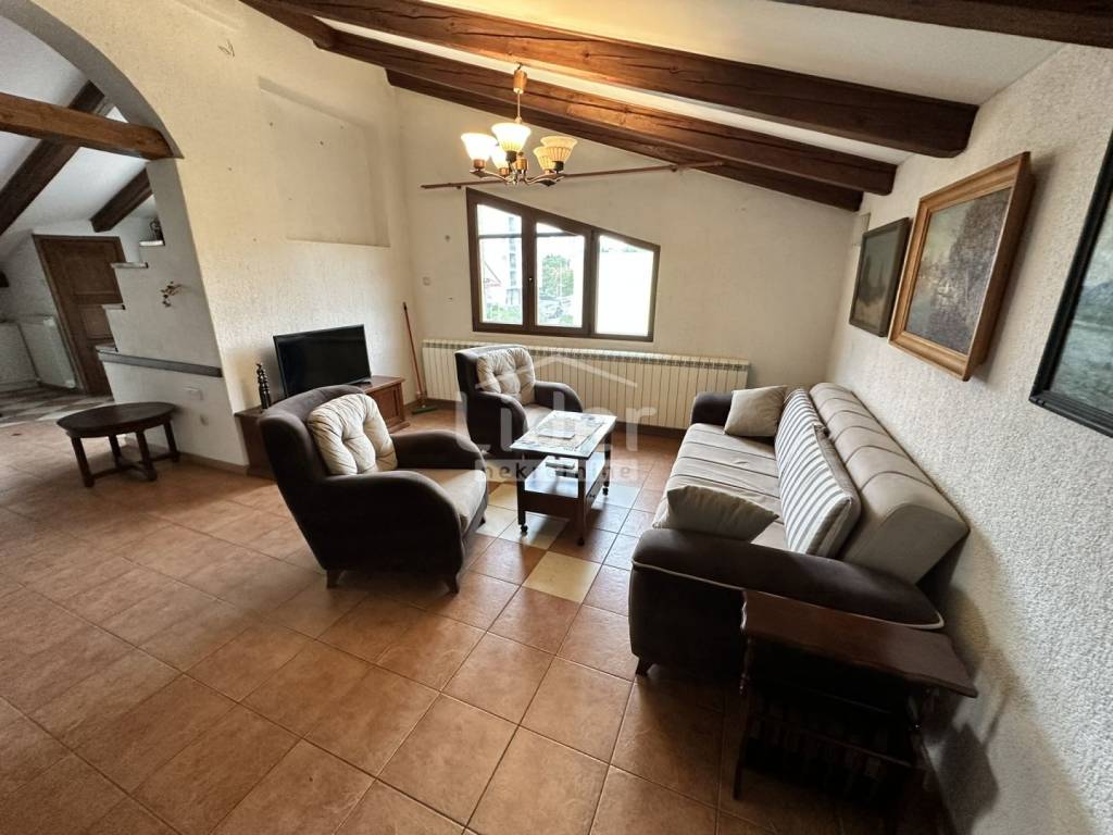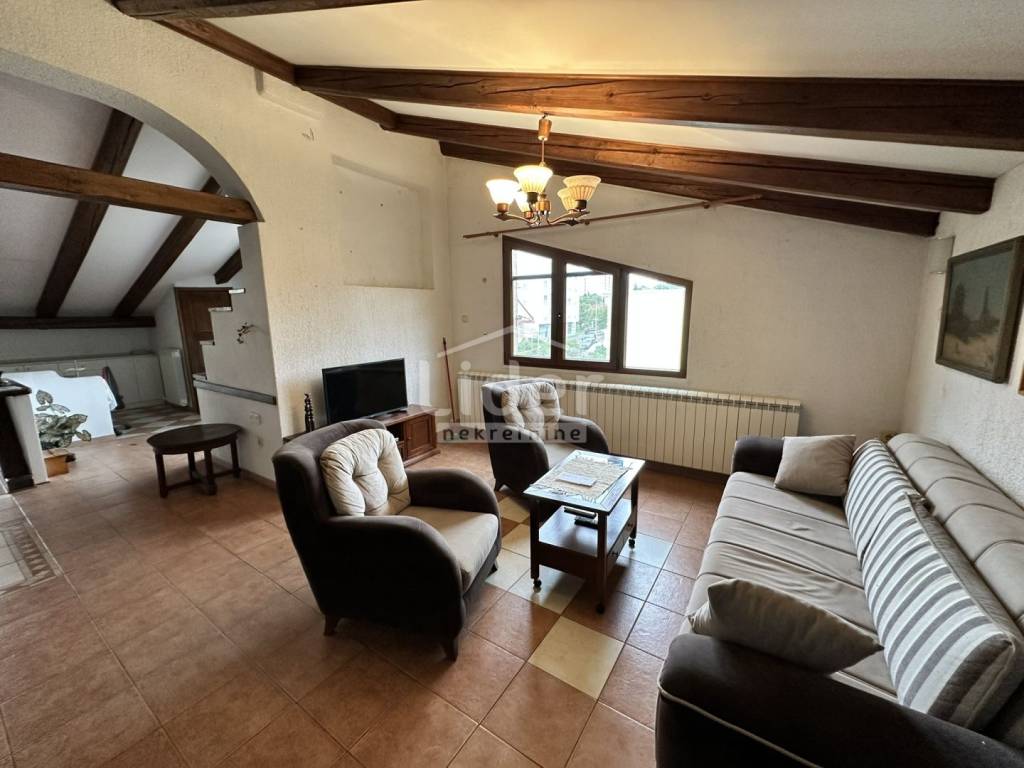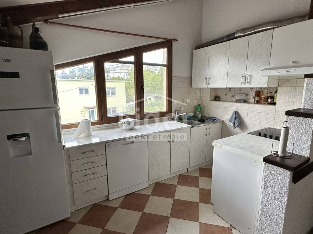 Rijeka, Donja Vežica - we are selling a comfortable 2-bedroom + living room floor of a house located in the attic of a house located near the center of Donja Vežica, near schools, shops, bus lines and all other necessary amenities. The floor - the apartment consists of a large open space in which there is a living room with a fireplace, a kitchen with a pantry, a dining room, a closed loggia from which the sea can be seen in the distance, a separate private part in which there are two bedrooms, each with its own bathroom, toilet and hallway, and an access staircase and entrance hall.