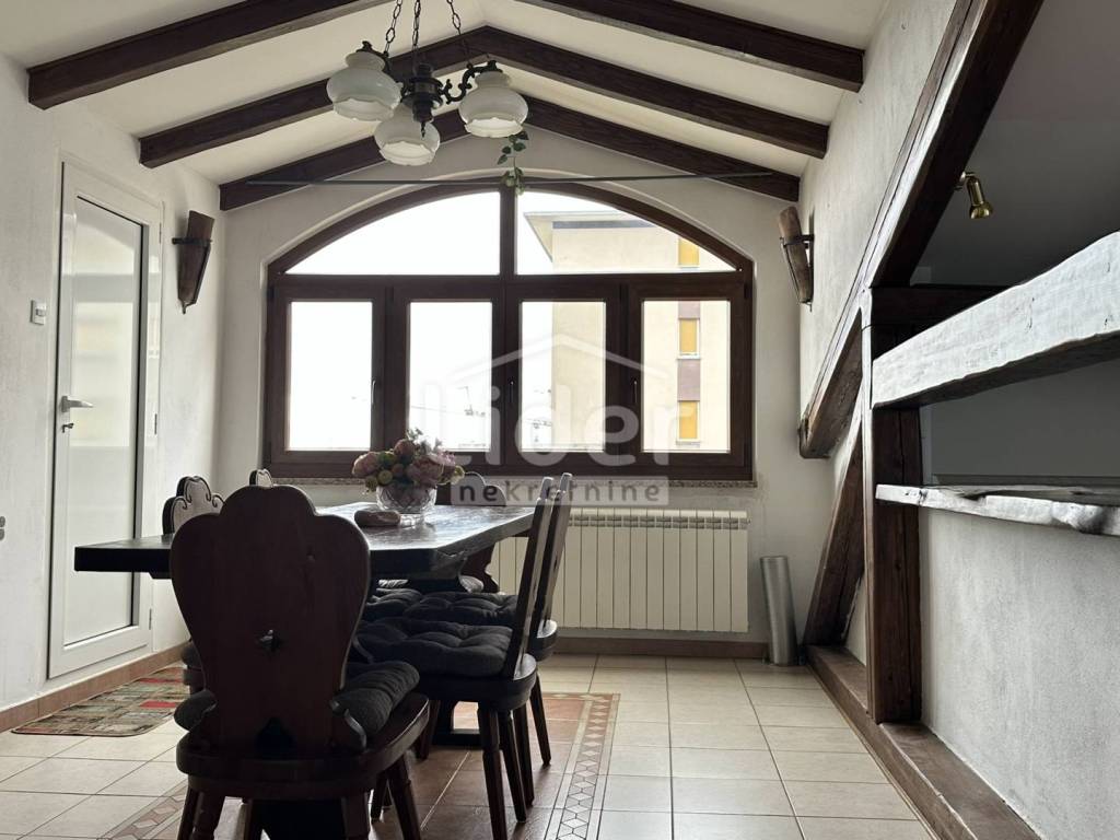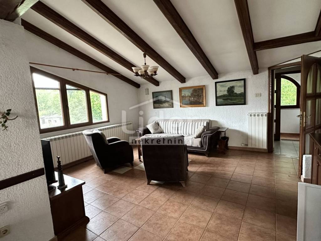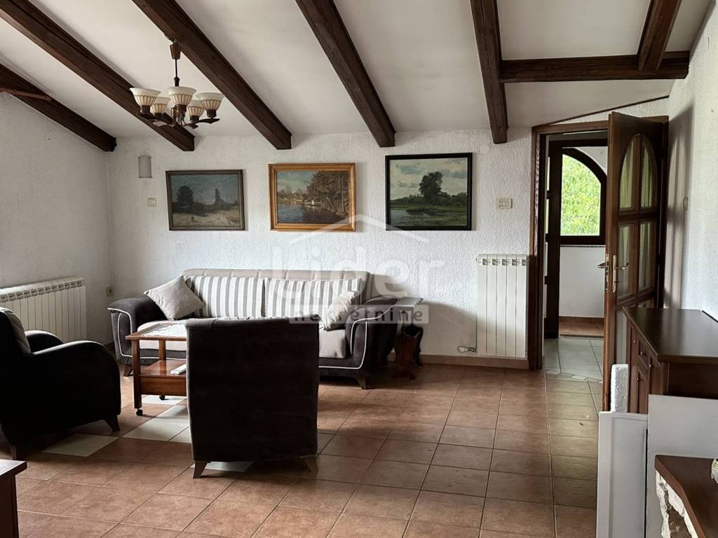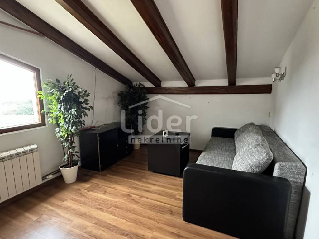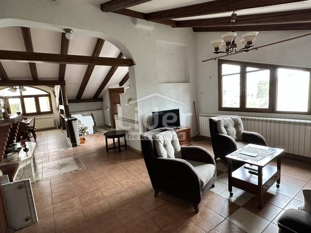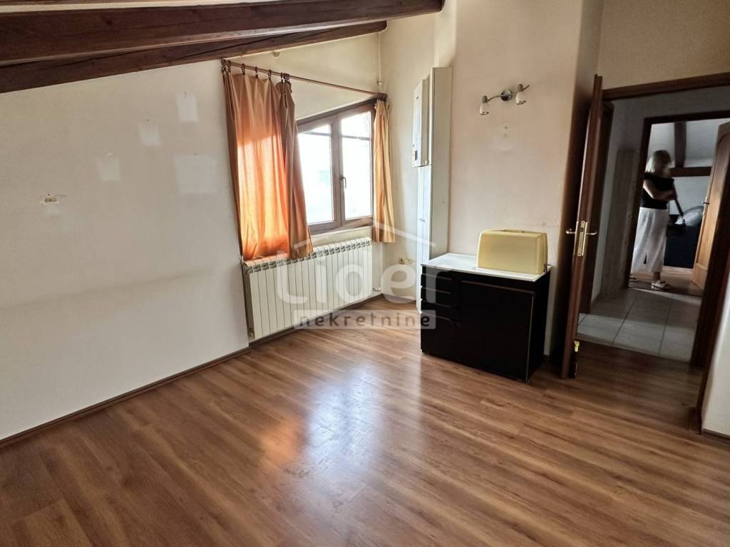 Rijeka, Donja Vežica - we are selling a comfortable 2-bedroom + living room floor of a house located in the attic of a house located near the center of Donja Vežica, near schools, shops, bus lines and all other necessary amenities. The floor - the apartment consists of a large open space in which there is a living room with a fireplace, a kitchen with a pantry, a dining room, a closed loggia from which the sea can be seen in the distance, a separate private part in which there are two bedrooms, each with its own bathroom, toilet and hallway, and an access staircase and entrance hall.
