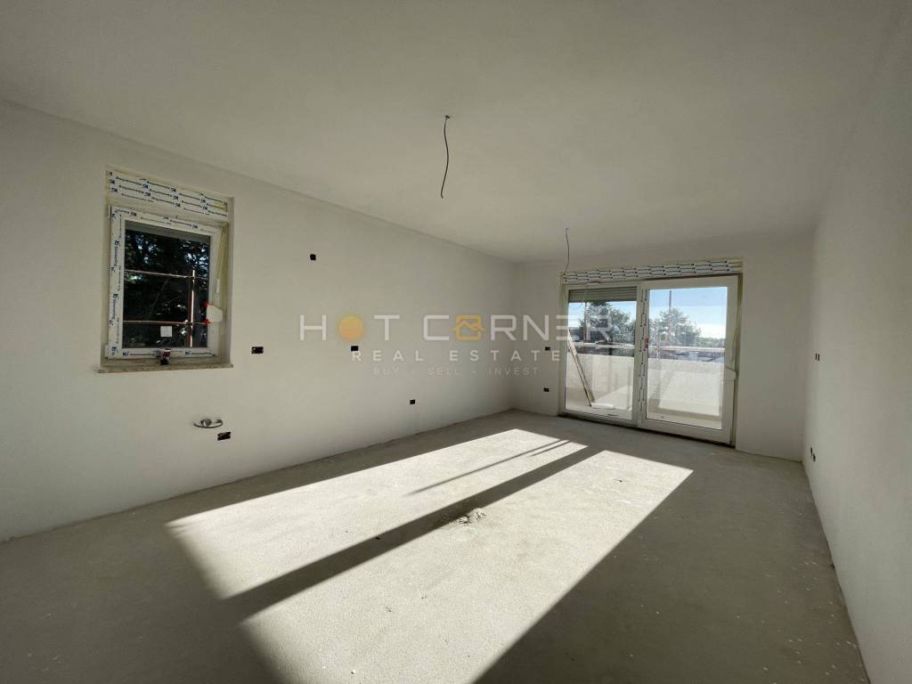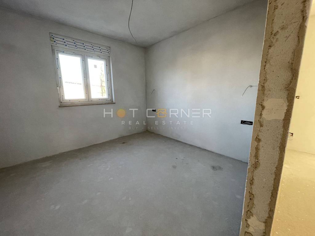 For sale is a beautiful modern apartment in a new building in Barbariga, Vodnjan, measuring 63.52m2 on the ground floor of a small residential building of only 6 apartments. The building is located only 300 m from the sea and the beach. The apartment is located on the ground floor and consists of an entrance hall (5.79m2), a storage room under the stairs (4.64m2, net reduced area 2.32m2), 2 bedrooms (10.88m2 and 11.11m2), a living room with kitchen and dining area (24.80m2), a bathroom (5.57m2), and a terrace (6.10m2, net reduced area 3.05m2). A total of 63.52 m2,