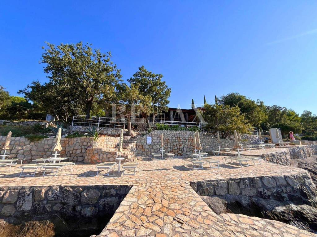 Restoran je južno orijentiran, što mu omogućava obilje prirodne svjetlosti i prekrasan pogled na more. Postoji i mogućnost koncesijskog odobrenja za plažu ispod restorana. Na toj plaži, koja je omiljeno mjesto za opuštanje gostiju, nalaze se ležaljke i suncobrani, čime dodatno proširujete ponudu i privlačite širu publiku.