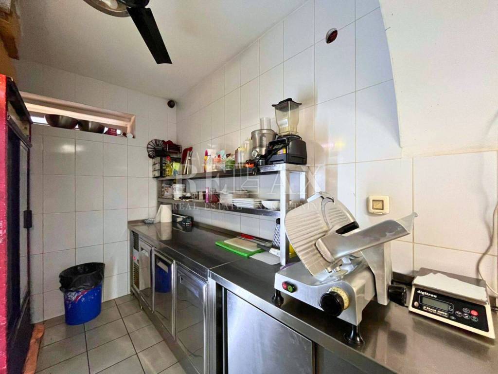 Prizemlje ovog objekta sastoji se od skladišta, prostora sa šankom te dva wc-a za goste. Suterenski dio, osim dodatnog skladišta, sadrži potpuno opremljenu profesionalnu kuhinju, komoru te dodatnu kupaonicu. Svaka prostorija je opremljena klima uređajem, čime se osigurava ugodna atmosfera u svako doba godine.