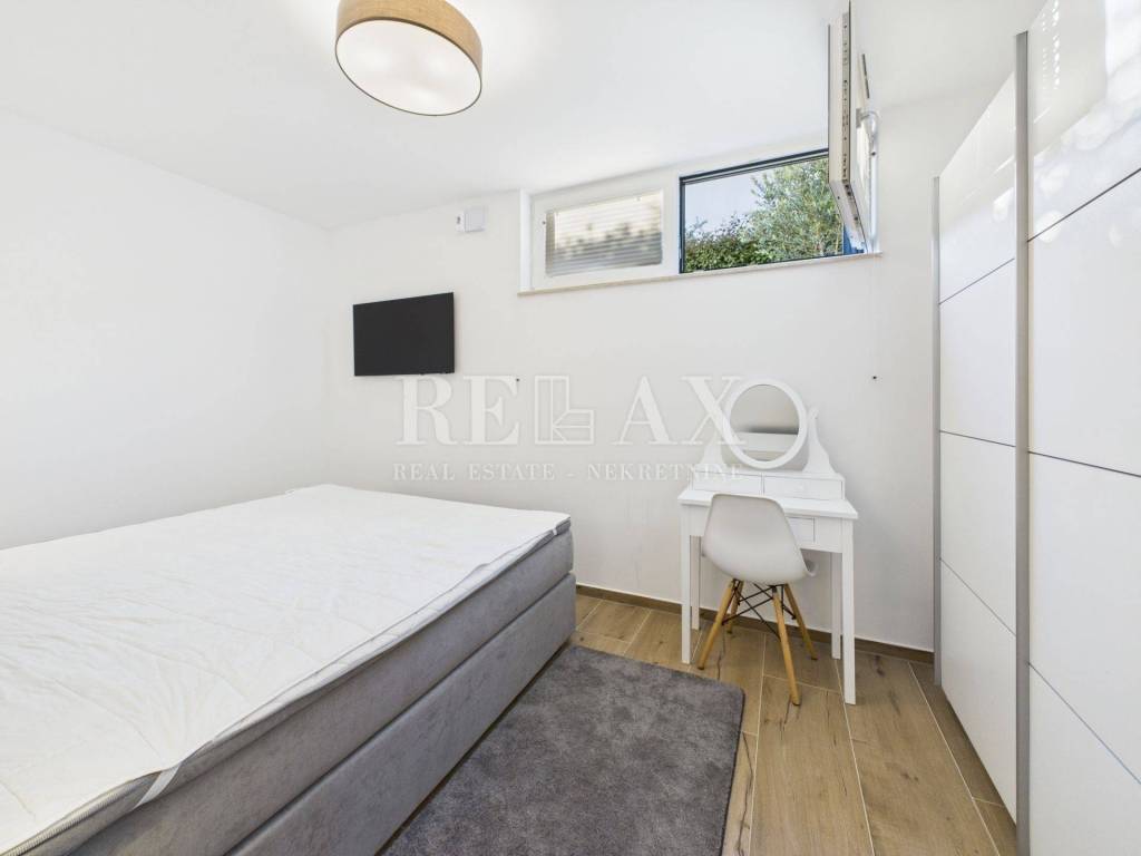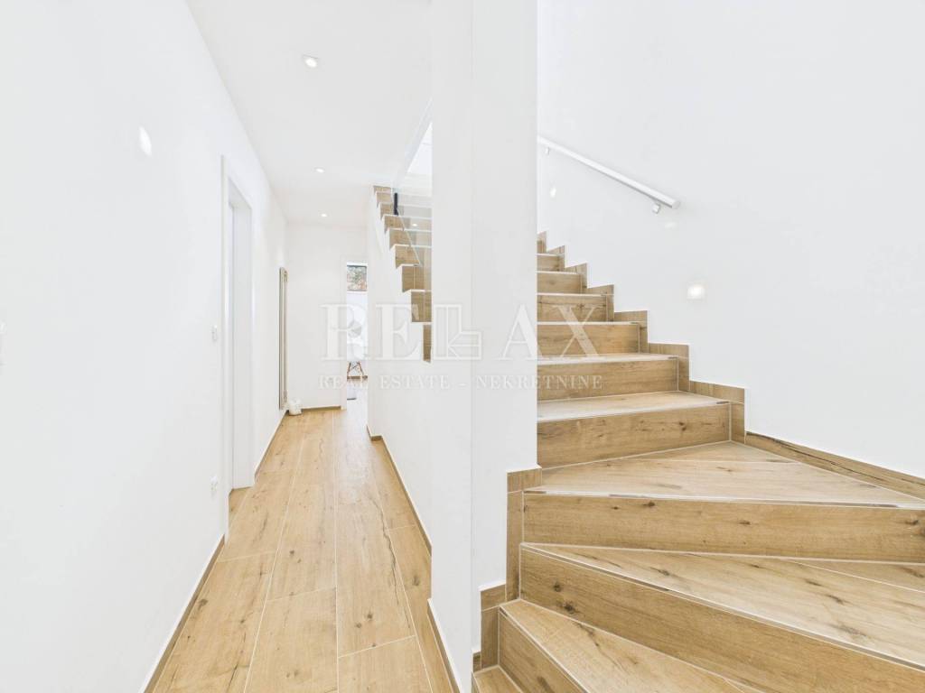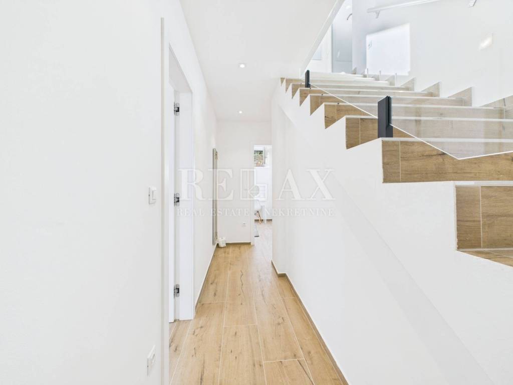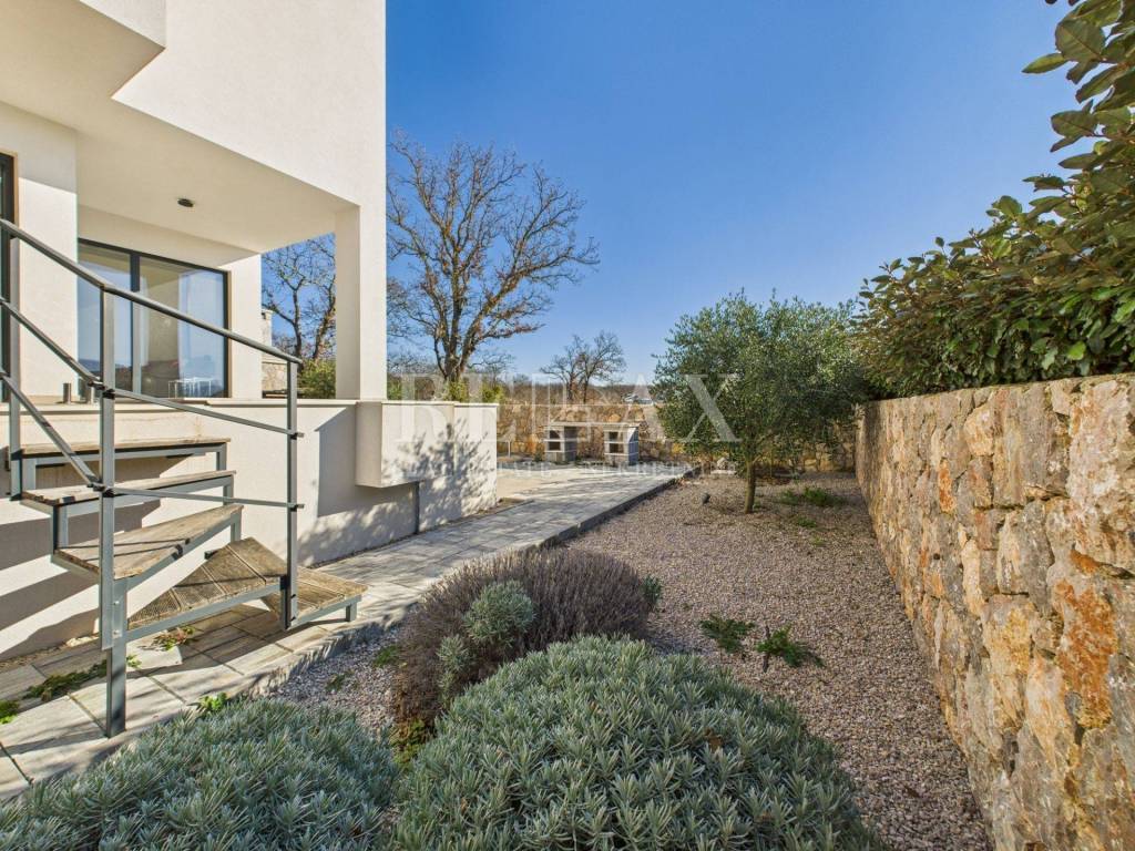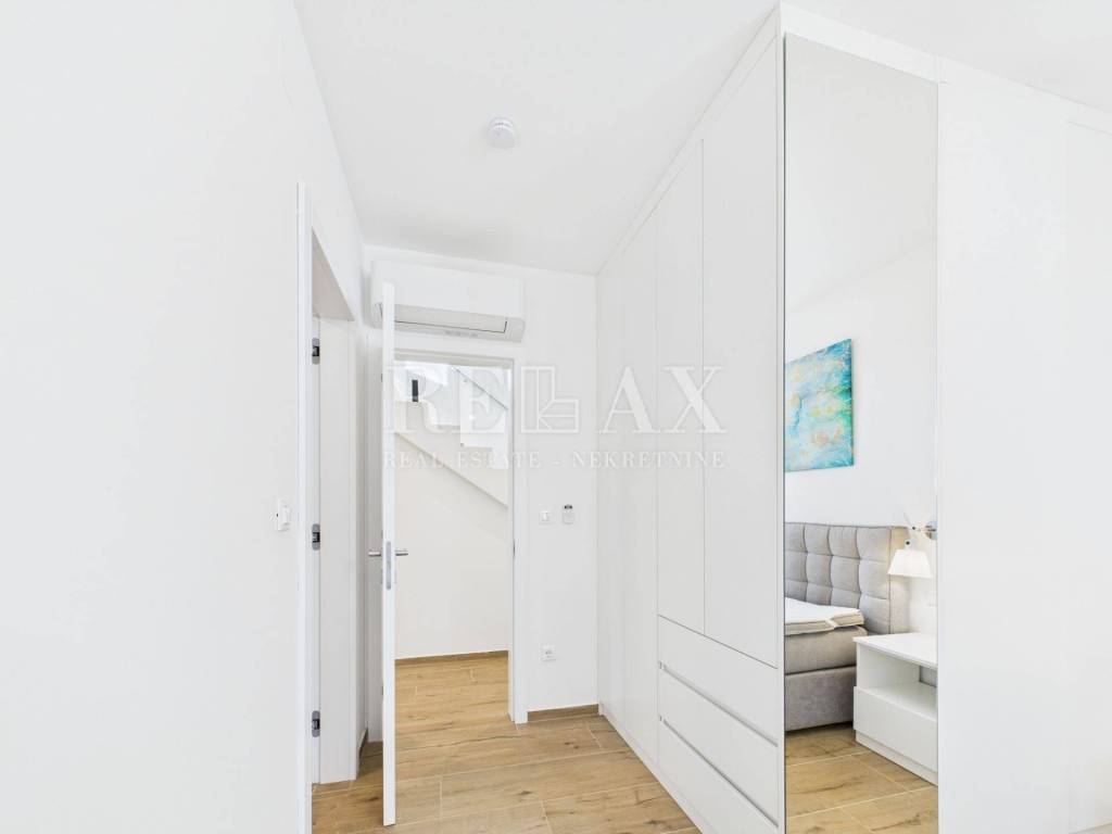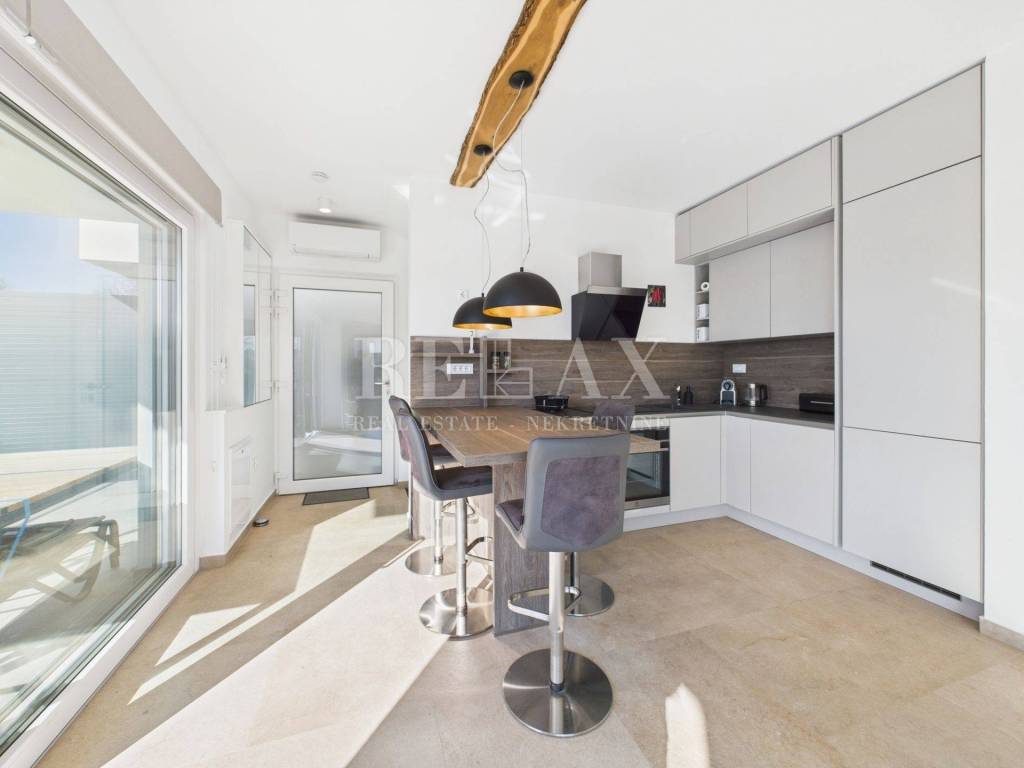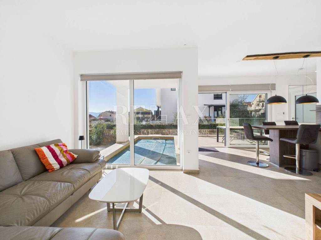 In Njivice, at an attractive location just 500 meters from the sea and 300 meters from the town center, a luxurious two-story apartment with a swimming pool and a landscaped yard is for sale. This property, built in 2022, offers a high level of comfort, quality construction, and top-notch equipment.