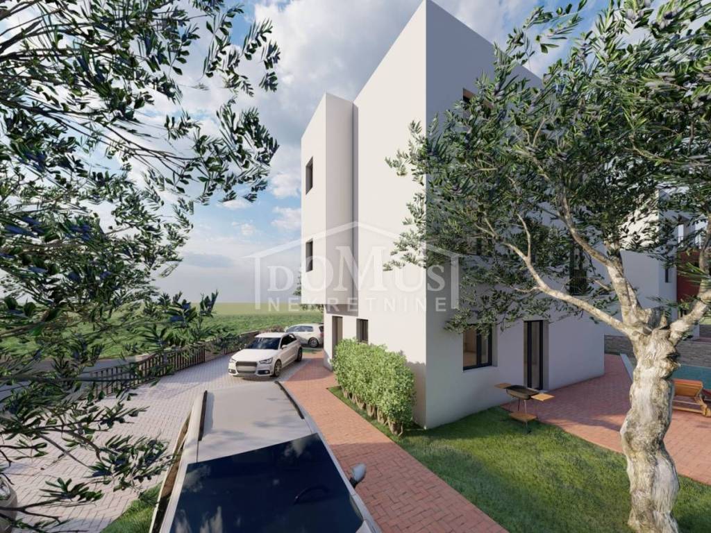The apartments on the ground floor have their own courtyard where it is possible to build a swimming pool. The apartments will be equipped with electric underfloor heating in the living room and bathrooms, split system inverter air conditioning, aluminum joinery with a interrupted thermal bridge and triple insulating glass. TI blinds for sun protection, built-in chimneys, ground floor and bathrooms - ceramic tiles; bedrooms - three-layer parquet, green courtyards and grassy areas, remote control - regulation of heating and cooling, electric charging socket. Cars, energy class A+ (NZEB nearly zero energy Building), Flat impenetrable roof, thermally insulated 15cm XPS, waterproofing TPO membrane, thermally insulated ground floor with 8cm T.I. The building is 1700m from the city center and 2200m from the Vruje beach.