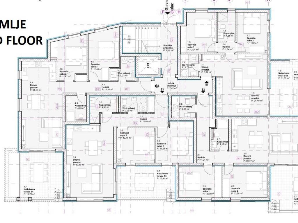 Residential unit S4, located on the ground floor of the building, oriented to the west, has 83.73m2 of usable area, consists of an entrance hall, toilet and laundry room, bathroom, two bedrooms, open space kitchen with dining room and living room and exit to a spacious covered terrace of 16.73 m2 from which access to the yard / garden belonging to this apartment. The apartment has an appropriate part of the garden, a storage room in the basement and one parking space.