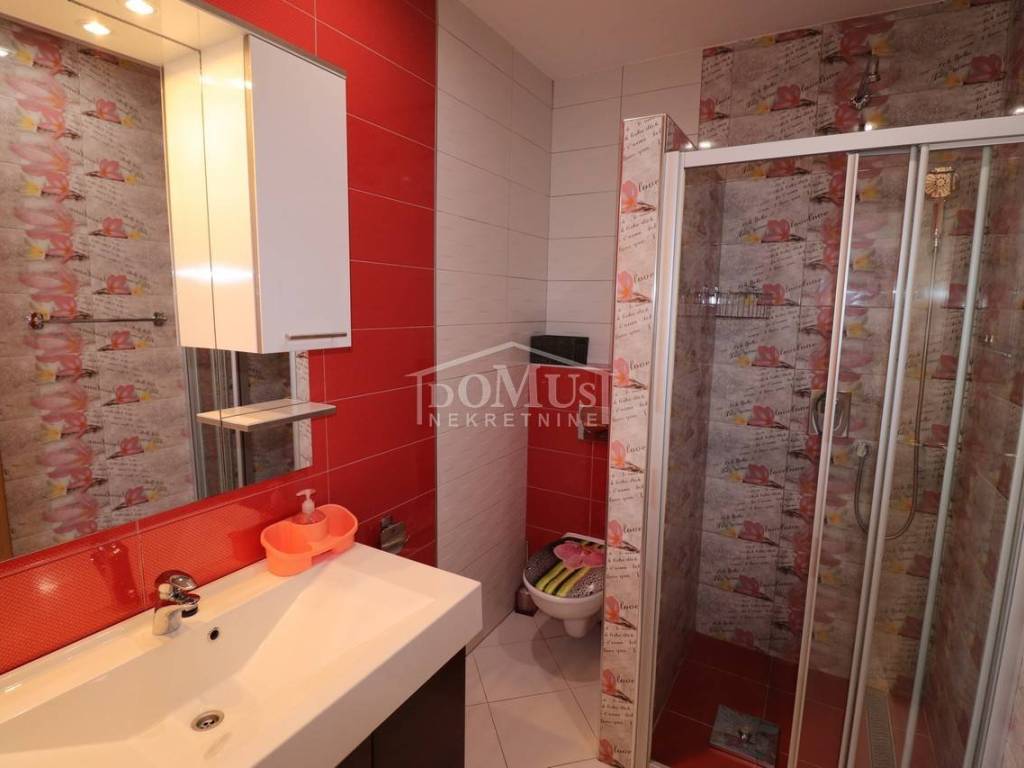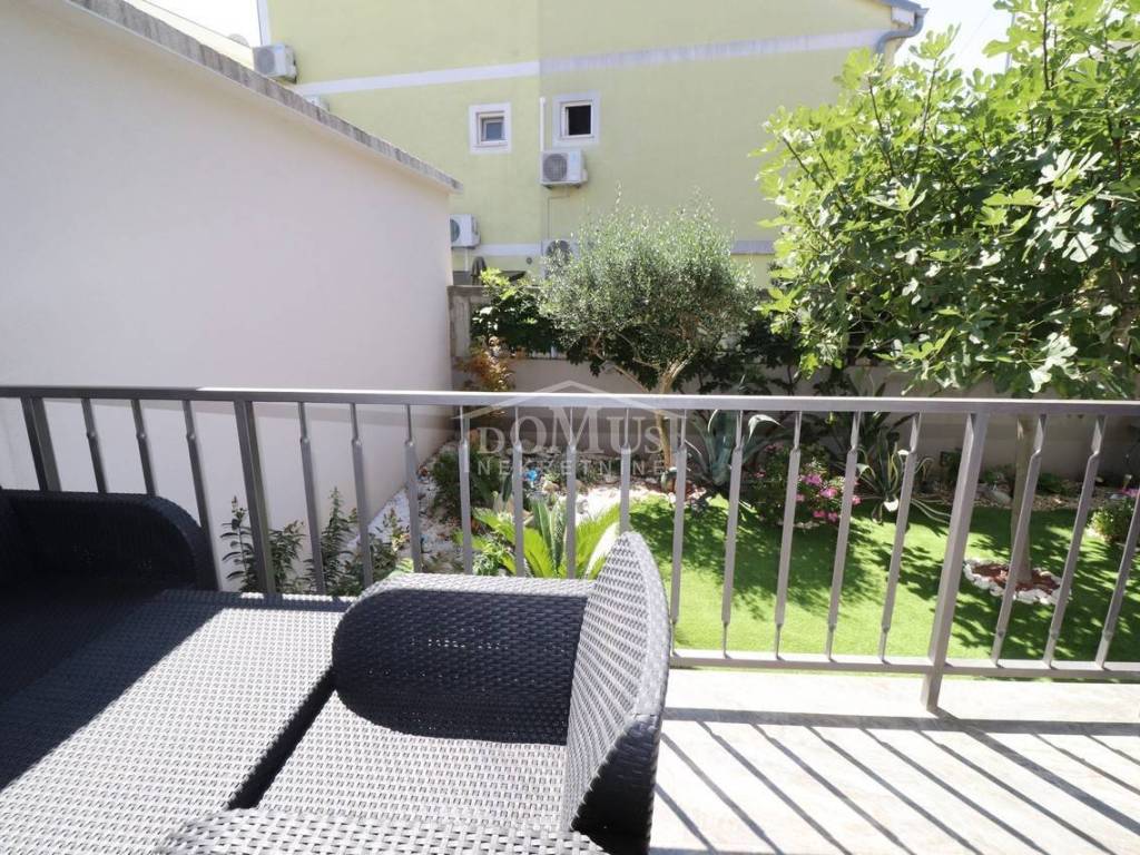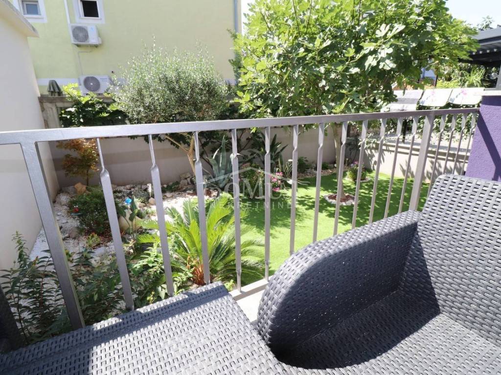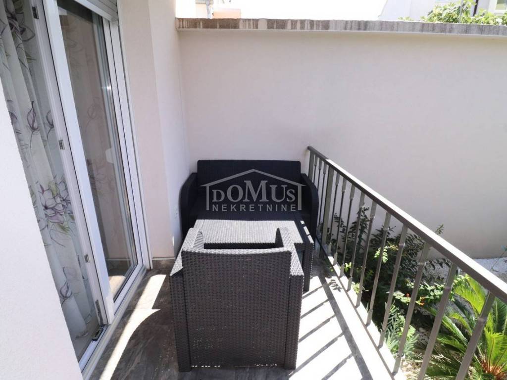 Attractive location, distance 230m from Lovetovo beach. Studio apartment on the ground floor, south side, with a total usable area of 36.50 m2, which consists of a kitchen with a dining room and a living room, as well as a bedroom as a whole, a bathroom, a terrace of 4.96 m2 and a garden of 15.66 m2. The apartment is fully furnished, it is included in the price of the property. The apartment has a garage of 31.03 m2, which is not furnished, but with electricity and water installations, and one parking space in front of the garage. The apartment is 1500m from the city center.