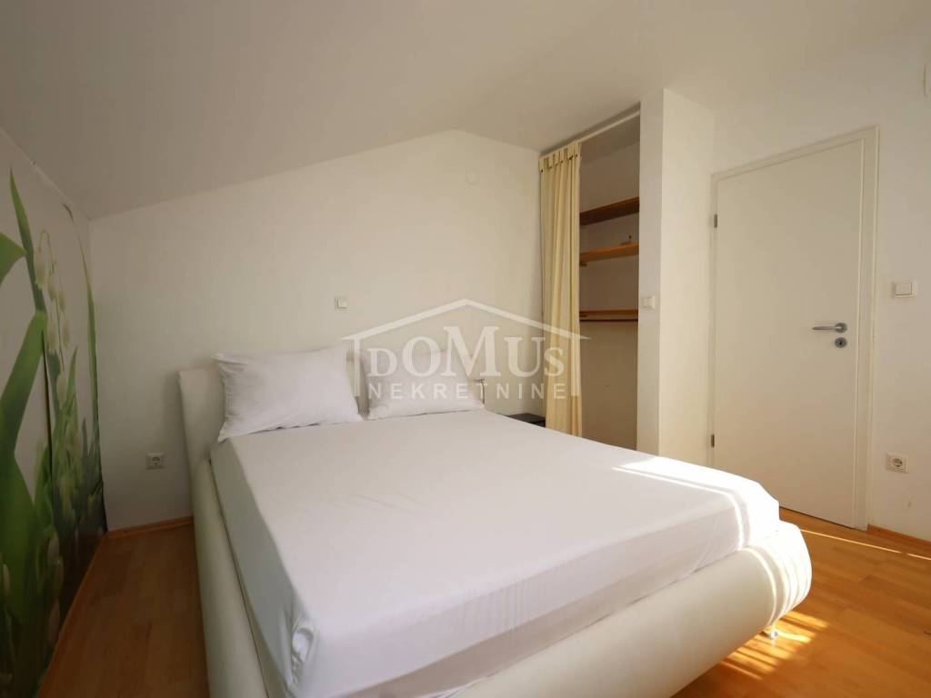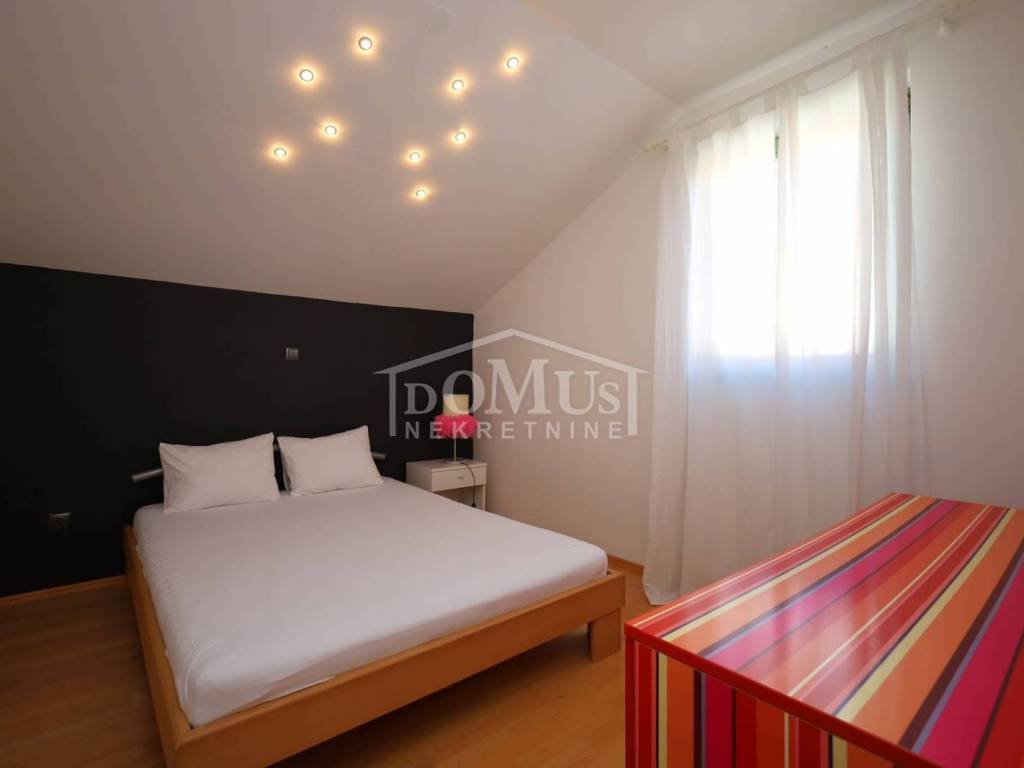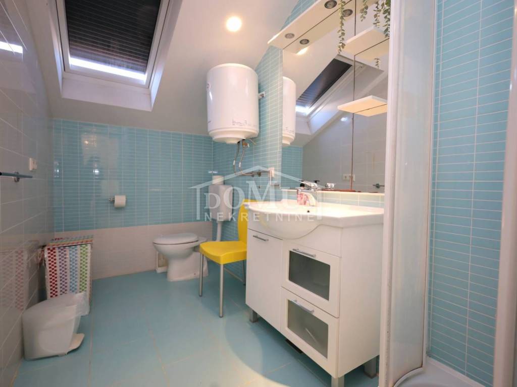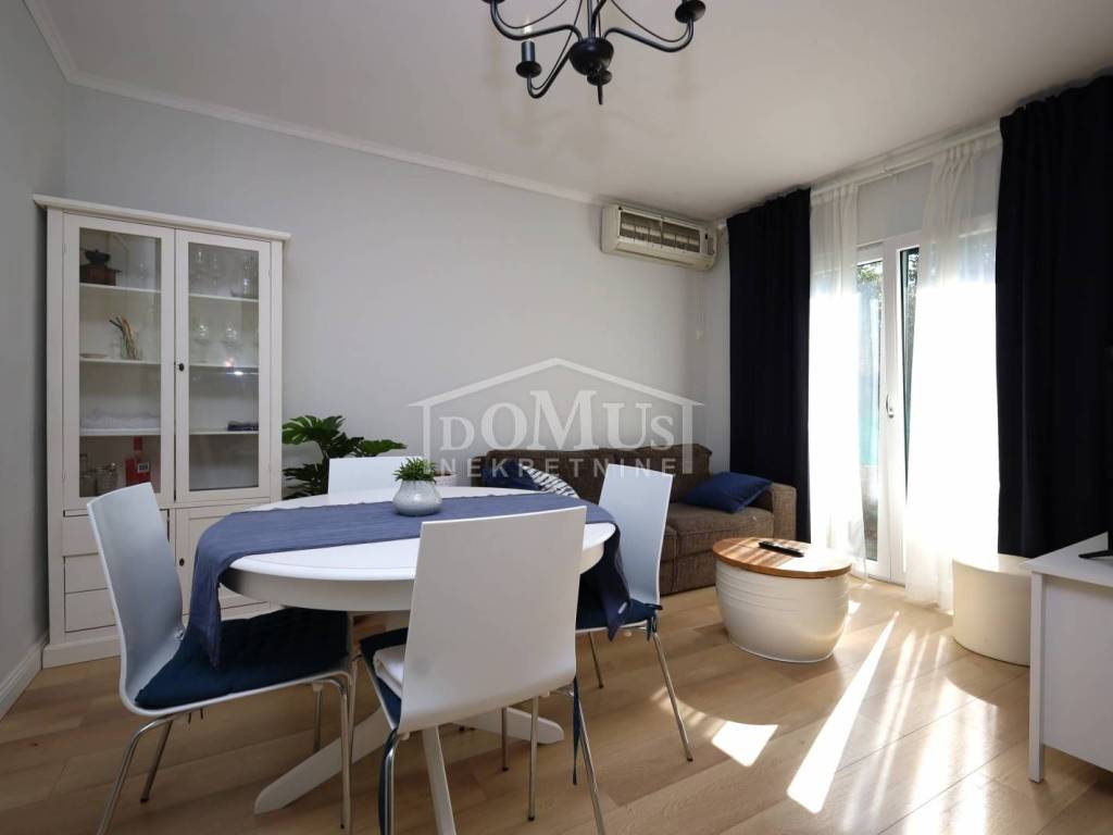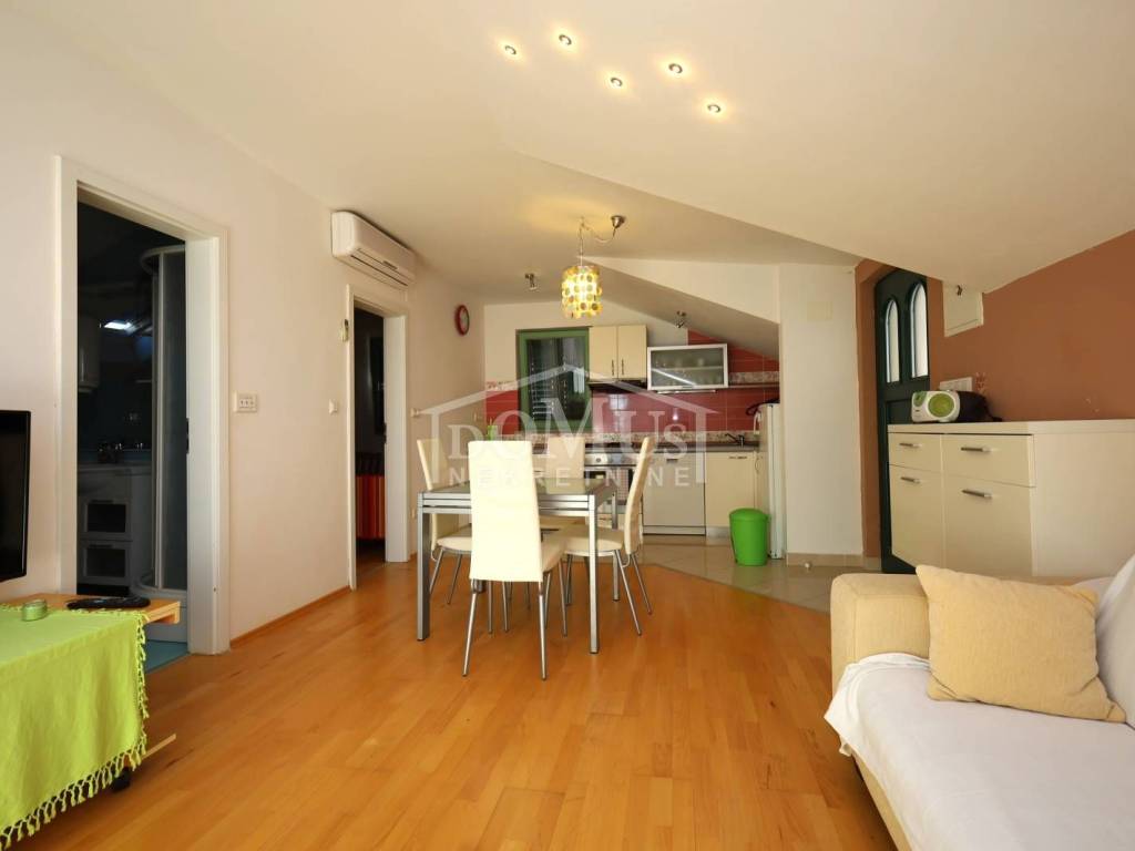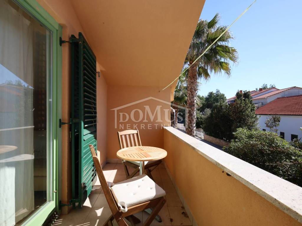 Small detached family house on Vir, directly by the sea. The house was built in 1980, has two floors (ground floor + first floor), is located on a plot of 208 m2, and there is a yard around the house that offers parking for two to three cars. The house consists of two apartments, each 65 m2 in area, completely separated from the outside by a separate entrance, as one is located on the ground floor and the other on the first floor. Together they have a total area of 130 m2. The ground floor of the house consists of a loggia, a living room with kitchen, a hallway, two bedrooms, a bathroom, and two storage rooms. The first floor consists of an uncovered terrace from which you enter the apartment, a living room and kitchen, a bathroom, two bedrooms, and a loggia. The house was completely renovated in 2022, is fully equipped and furnished, has a beautiful design, is equipped with air conditioning, and is ready to live in and enjoy. The distance to the beach is 40 m, to the nearest market 150 m and to the city center itself 1000 m.