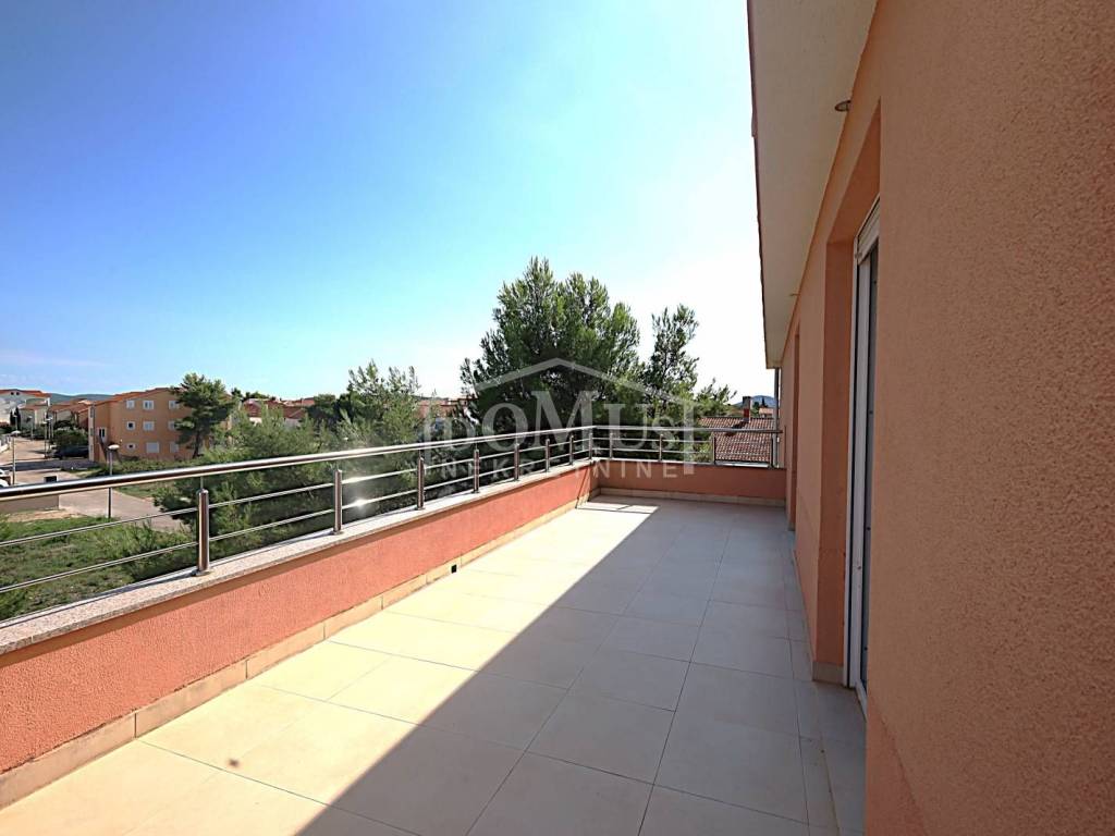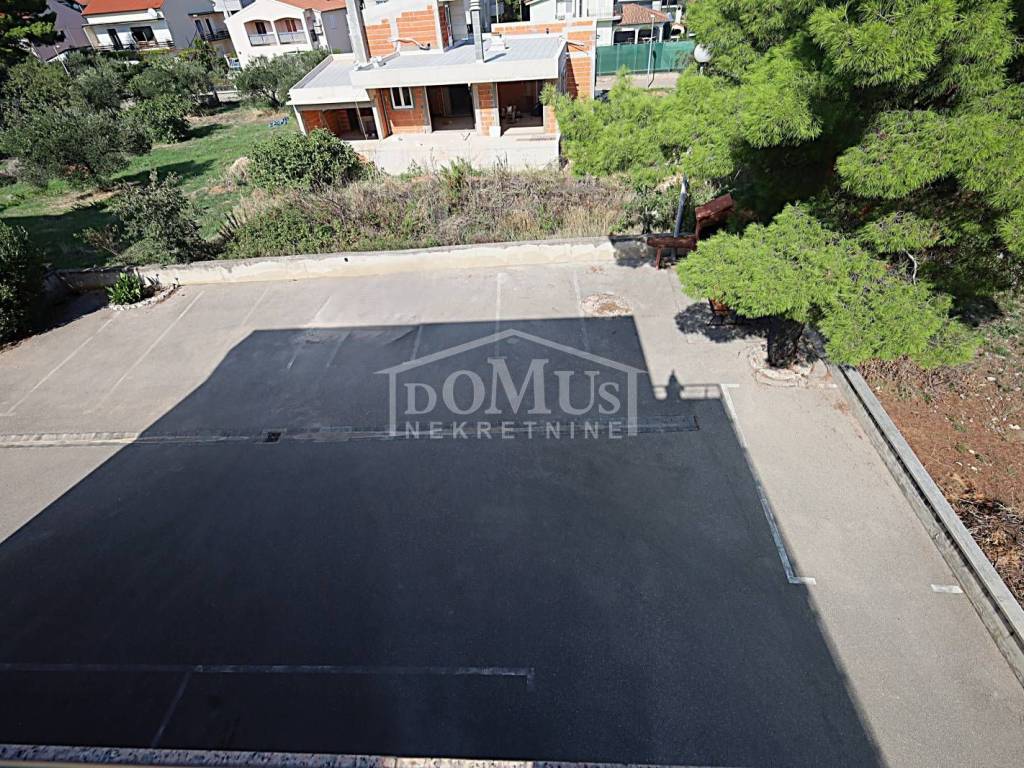 In Vodice, in a quiet location, a spacious three-bedroom unfurnished apartment is for sale, with a total net usable area of 79.52 m². The apartment also includes a storage room on the ground floor of 4.30 m², as well as two outdoor parking spaces (VPM 01 and VPM 06), each measuring 15.00 m². The total net usable area together with the storage room and parking spaces amounts to 113.82 m². The apartment is located on the second floor of a residential building and consists of a spacious living room, kitchen with dining area, two bedrooms, a bathroom, and an entrance hall. A special feature of this apartment is the large uncovered terrace of 22.96 m², ideal for enjoying the outdoors. Only 600 m from well-maintained beaches and 900 m from the center of Vodice – the perfect combination of a quiet location and proximity to all essential amenities.
