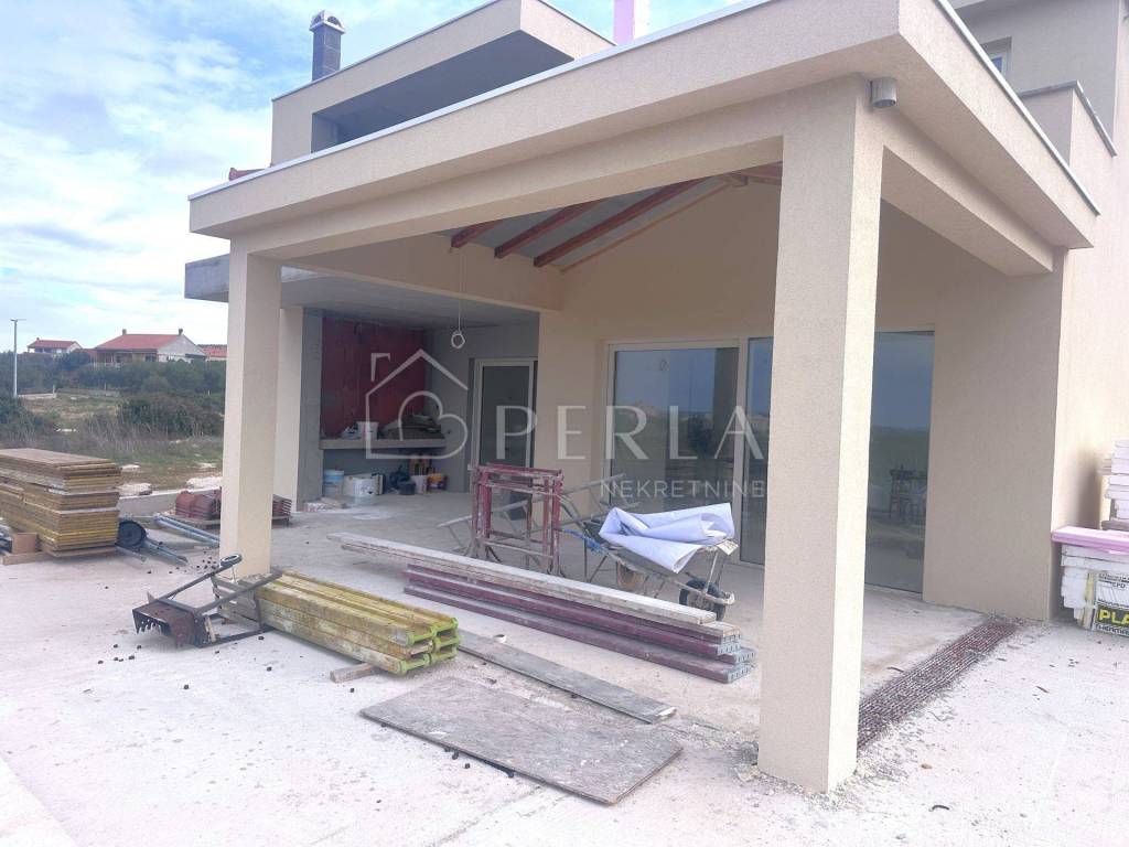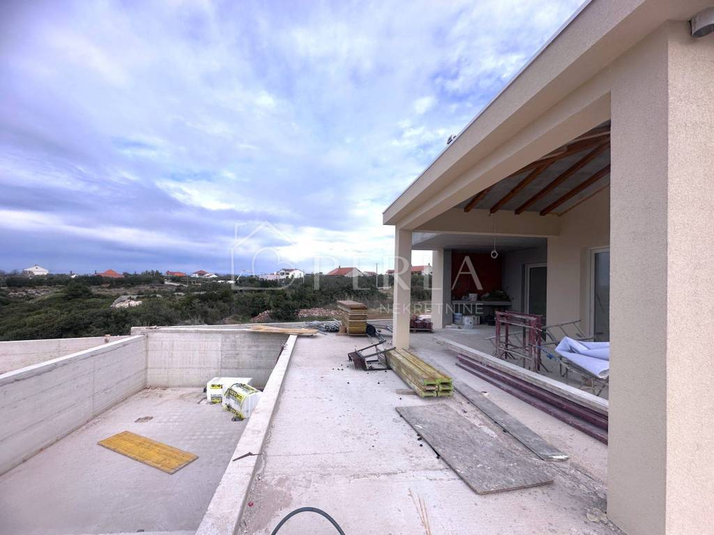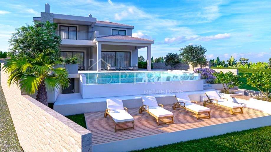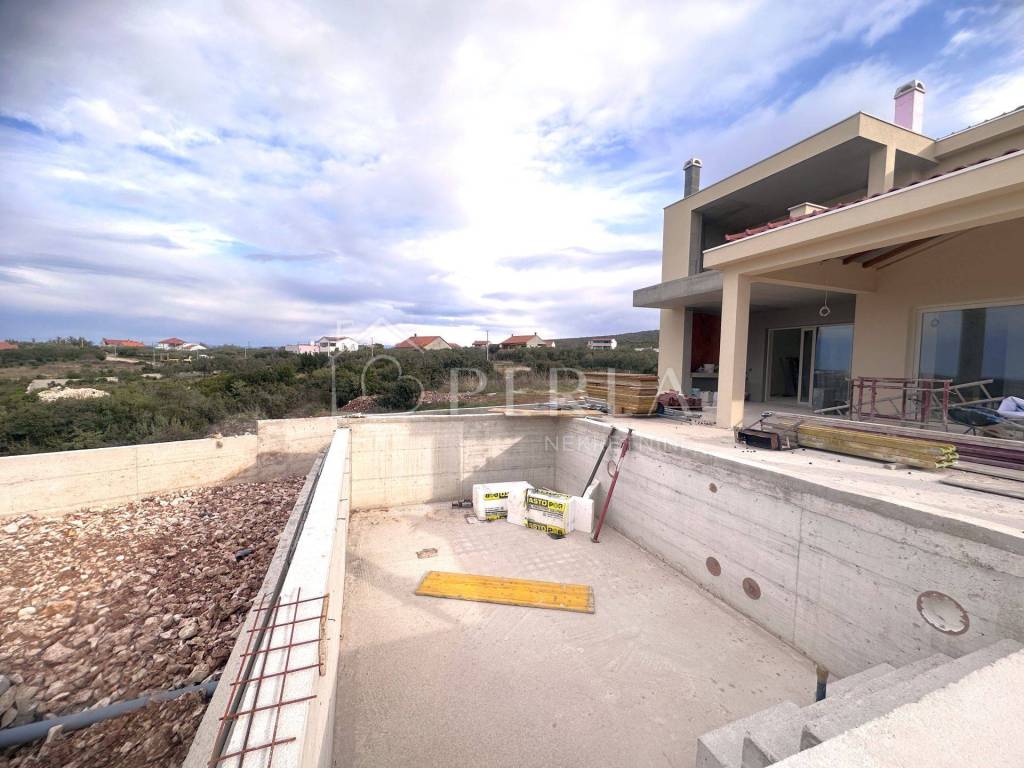 This modern villa with a panoramic view of the Zadar archipelago and Velebit was built on a plot of 774 m2 and consists of a ground floor, a first floor and a large yard with a 32 m2 swimming pool.