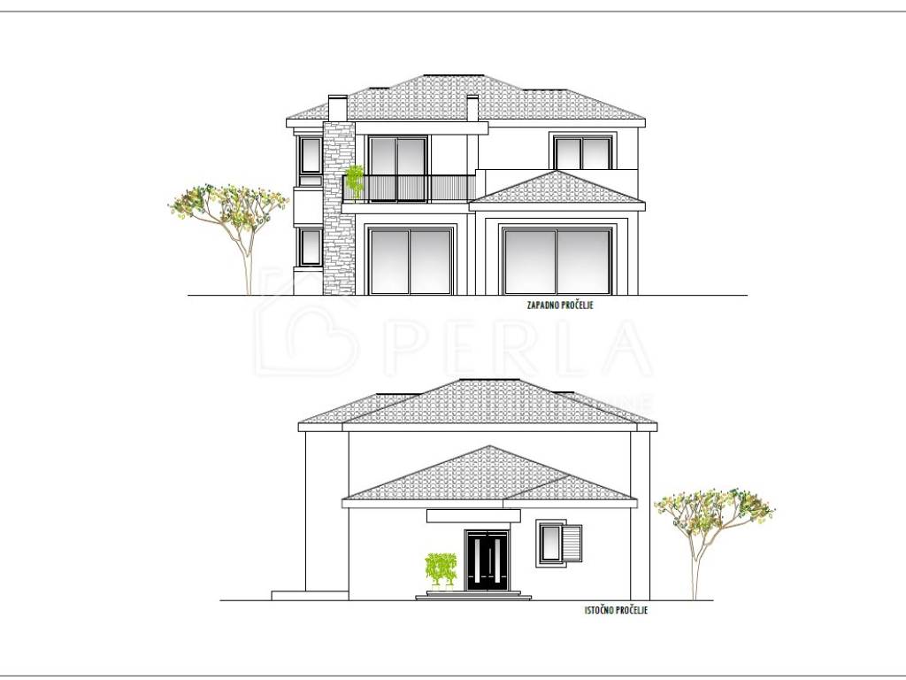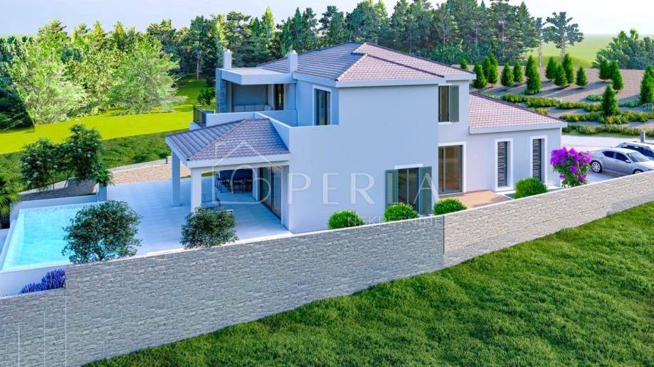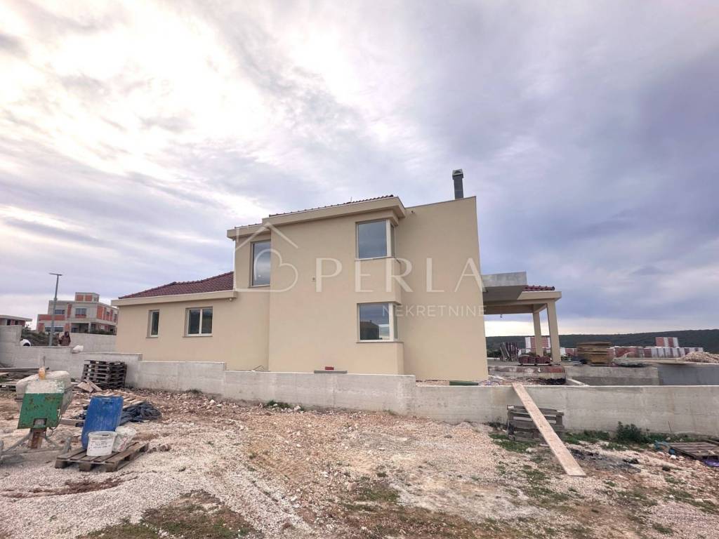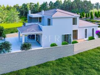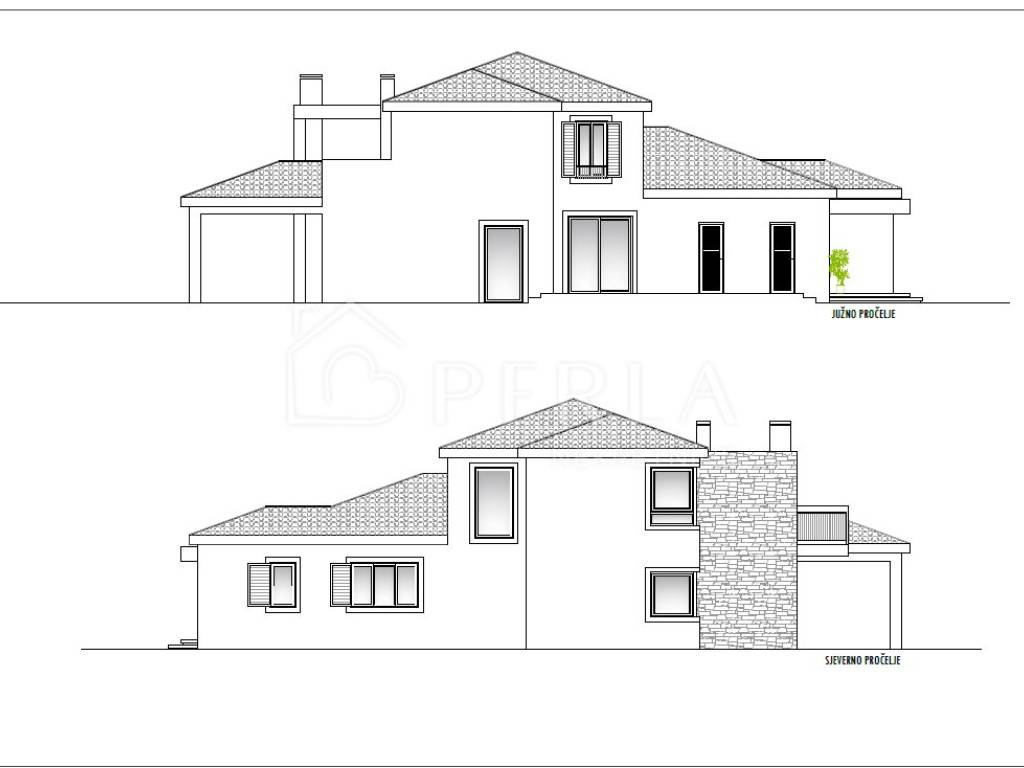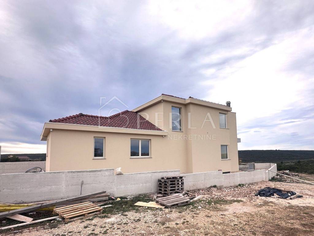 The villa is currently being sold in the high Roh-bau construction phase, which means that all concrete works, roofing works, sheet metal works have been completed, closed with high-quality aluminum carpentry, all installations have been prepared (water, electricity, sewage, mechanical part), interior walls covered with plaster, smoothed and painted ceilings, plastered screed (without floor coverings so that the customer can individualize and adapt the interior design to his needs), concrete wall around the yard, facade, swimming pool (construction, stairs, installations) and yards prepared for detailed horticultural landscaping.