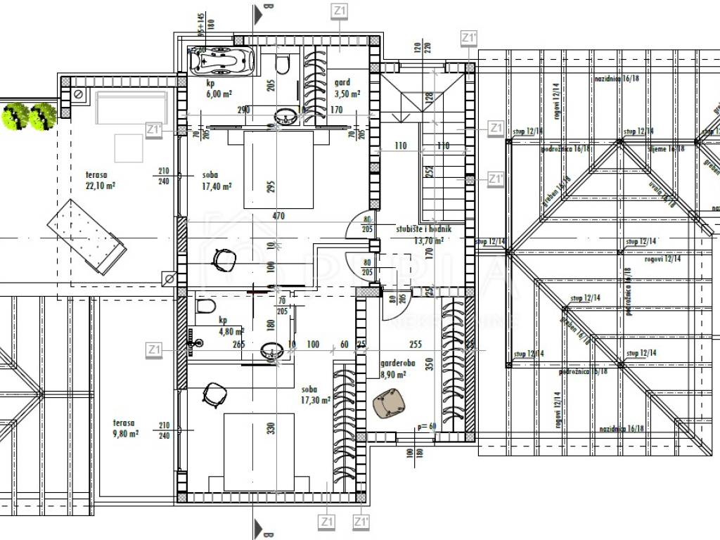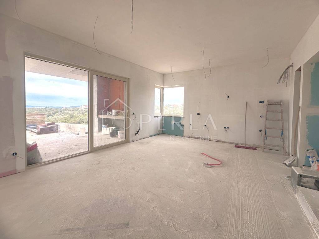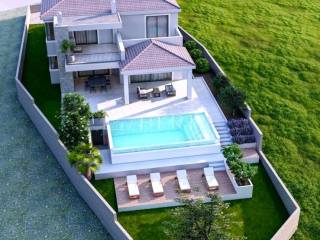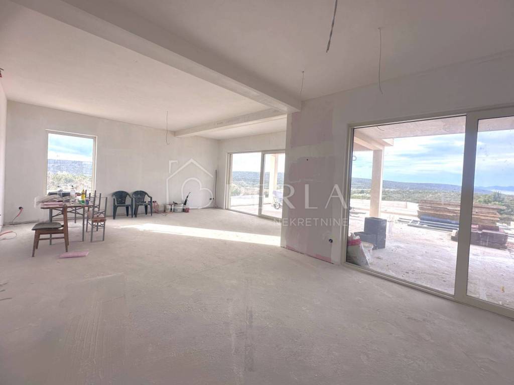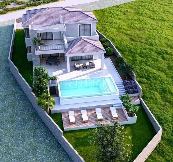The villa is currently being sold in the high Roh-bau construction phase, which means that all concrete works, roofing works, sheet metal works have been completed, closed with high-quality aluminum carpentry, all installations have been prepared (water, electricity, sewage, mechanical part), interior walls covered with plaster, smoothed and painted ceilings, plastered screed (without floor coverings so that the customer can individualize and adapt the interior design to his needs), concrete wall around the yard, facade, swimming pool (construction, stairs, installations) and yards prepared for detailed horticultural landscaping.