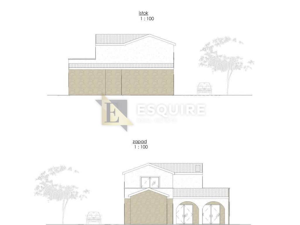 Uz zemljište se prodaje gotov projekt moderne vile površine 210 m² s bazenom. Projekt je u potpunosti izrađen i odobren, a građevinska dozvola je izdana. Svi priključci su osigurani, uključujući i plaćeni priključak električne energije.