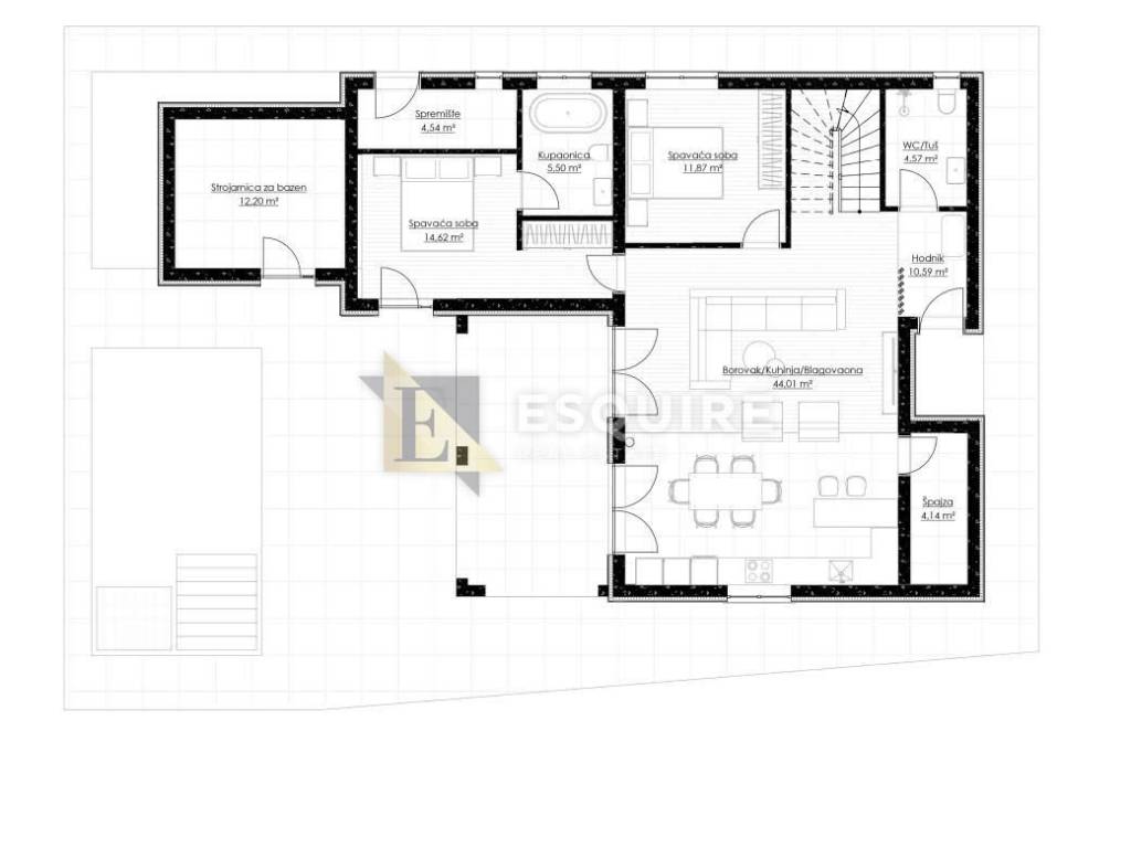 * Izlaz na veliku natkrivenu terasu i prostor za bazen