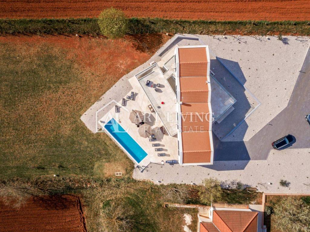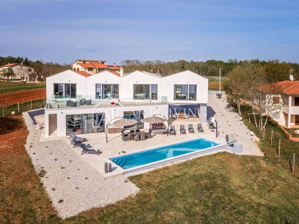 A luxurious villa with a modern design swimming pool is for sale, in a quiet and beautiful location, only 13 km from the sea and 19 km from the city of Poreč and its beautiful beaches.