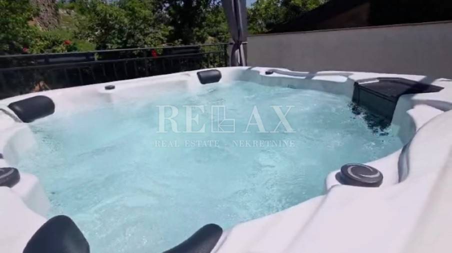 In the basement there are two taverns, one designed as a playroom or social area. The ground floor comprises an 82 m² apartment with an open space living room, kitchen and dining area with balcony access, two bedrooms and a bathroom. The attic features a room with a sauna and a spacious terrace with a jacuzzi and garden furniture – perfect for relaxation and outdoor living.