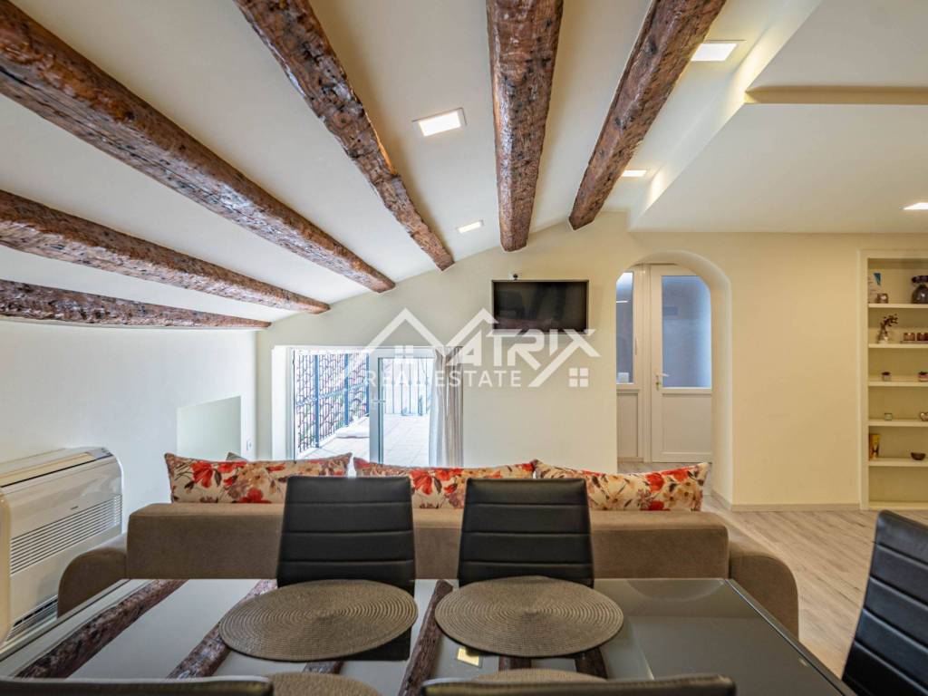 Located on the seafront in the very center of Poreč, this fully furnished 48 m² apartment offers a rare opportunity to own a property in the first row to the sea. Situated on the third floor of a well-maintained residential building, the apartment includes a spacious living room with a kitchen and dining area, one bedroom, and a bathroom. From the large terrace, you can enjoy breathtaking views of the Adriatic and Poreč promenade.