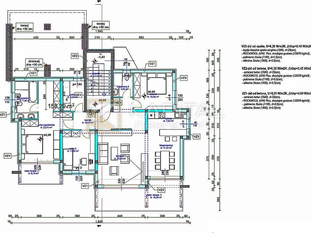 An excellent project in which the ground floor is for sale, a 3-bedroom apartment of 119.28 m2, a terrace of 25 m2, a basement (can be a small apartment or a space for socializing) of 50.28 m2, a garden of 200 m2 and 3 parking spaces. ini 185m2 (calculated in coefficients). It is planned to install diesel heating, air-conditioned rooms, above-average quality external carpentry, min 10 cm stone wool, double-layer glass fence, arrangement of the interior with an agreement with the buyer, etc. Very nice location near all facilities with a view of the sea. An agreement to buy 2 floors instead of the ground floor is possible. The apartments are identical except that there is a covered terrace on the ground floor and 2 covered balconies on the upper floors. New on the market! For all information, call 098/501-044