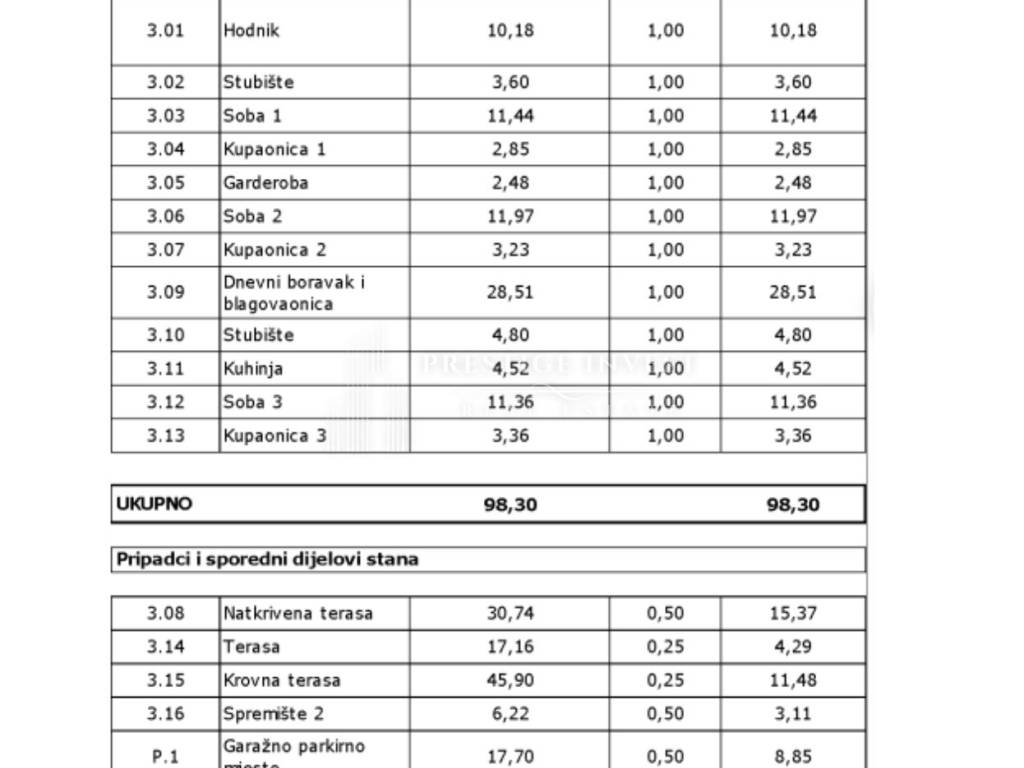 Apartment amenities -roof terrace (46m2) with a beautiful panoramic view of the sea and islands -one garage parking space - 17.7m2 -one storage room Total usable area of the apartment with amenities: 218 m²