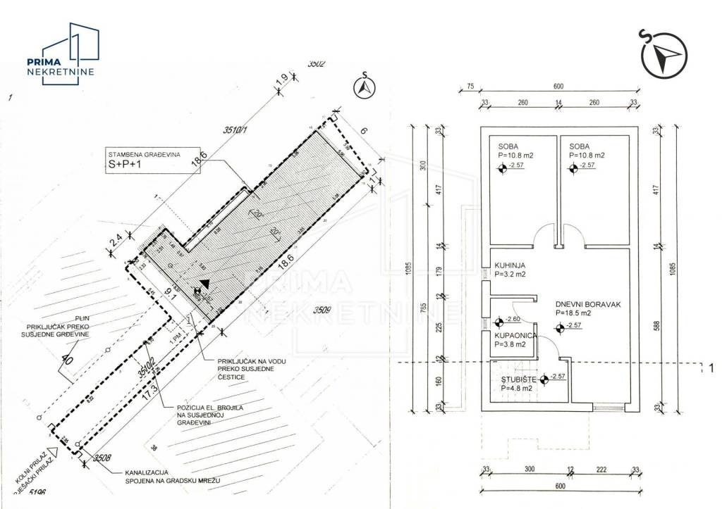 The house is equipped with two gas boilers for heating, air conditioning and video surveillance. The orientation of the house is North - East. It is possible to park up to three cars along the length of the garden.