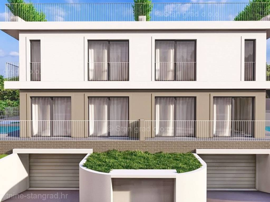In the real estate offer of the agency Stan Grad Immobilien, in the area of ​​the Crikvenica Riviera, there is a very attractive apartment perfect for a tourist stay and vacation on the Adriatic. This property is located in a prime location in the vicinity of Crikvenica and in the immediate vicinity of the sea, the beach and other tourist facilities. According to the type of property, it is a two-story apartment with internal stairs and an entrance area on the lower floor. In a modern building, the apartment is spread over the ground, 1st and 2nd floors. The total area of ​​this apartment is 104 m2. This area contains on the ground floor an entrance hall, a toilet, a kitchen with a dining room, a living room with access to the garden, and on the first floor there are 2 bedrooms, each with its own bathroom, one of which has access to the balcony. The staircase leads to the 2nd floor, where there is a spacious roof terrace. It should be noted that the added value of the apartment is given by the adjoining garden with a swimming pool and sun deck. It is possible to park the property owner's vehicle in the garage belonging to the apartment and in the yard. In addition to the previously mentioned characteristics, the apartment has an excellent location and orientation, which provide its residents with a wonderful open view of the sea. The planned completion of construction is expected in 2026. This apartment is subject to VAT. The seller of the apartment guarantees proper ownership documents and the possibility of quick registration of ownership of the property in question to the buyer in the land register. Contact us or visit us on the island of Krk, we will be happy to serve you and answer your questions. The Stan Grad Immobilien agency will provide all its clients with all the necessary assistance in registering ownership and taking over the real estate itself.