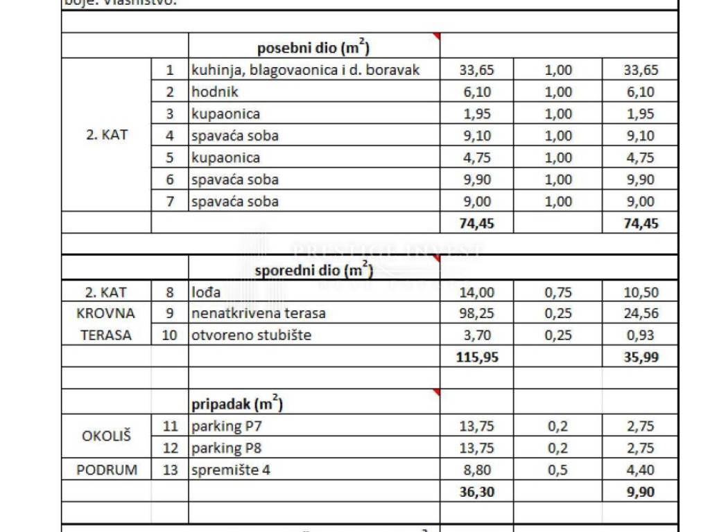Apartment amenities: Parking space P7 - 13.75 m² (net value 2 ,75 m²) Parking space P8 - 13.75 m² (net value 2.75 m²) Storage room 4 in the basement - 8.80 m² (net value 4.40 m²) Total usable area of the apartment with accessories: 226.70 m² Total usable area value: 120.34 m²