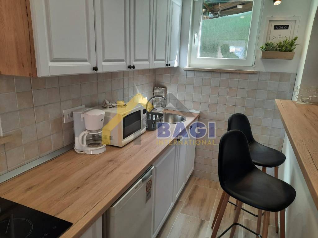 The house consists of three fully furnished apartments, two of which are studio apartments on the ground floor, while one is a one-bedroom apartment on the first floor. All apartments are well-equipped and have their own air conditioning, making them ideal for tourists and guests. The garden of 194 m2 provides enough space for enjoying the fresh air and various activities.
