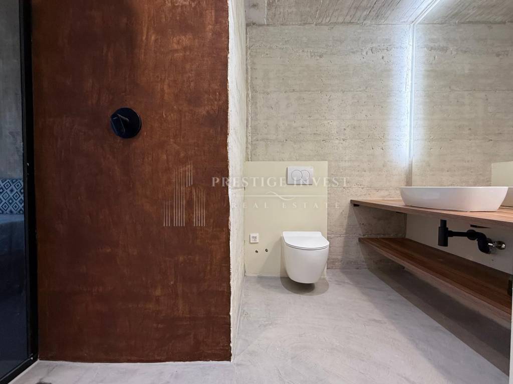 The interior is a combination of microcement and polished concrete, protected with San Marco Italian coatings.