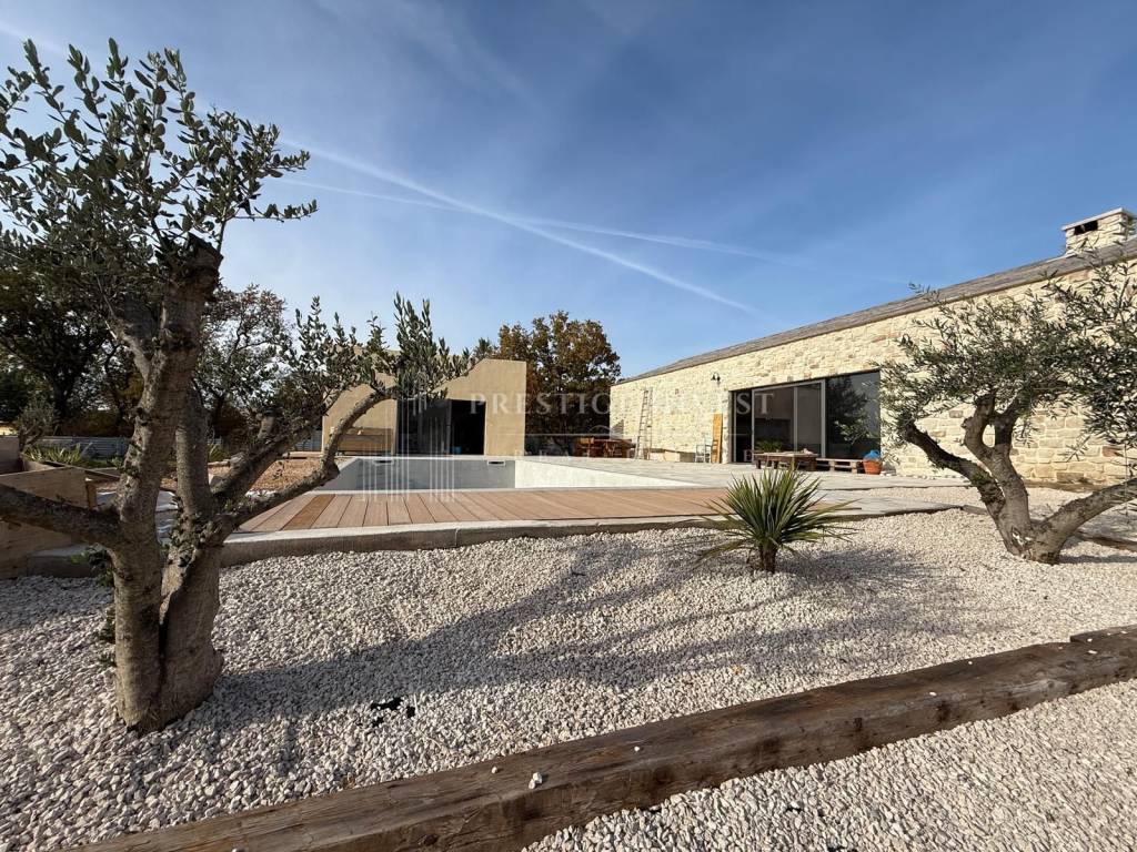 For sale is an exclusive luxury one-story house in Poljice, near Zadar, located on a large plot of 2,550 m² in a quiet environment outside the construction zone - which guarantees absolute privacy and security of the environment.