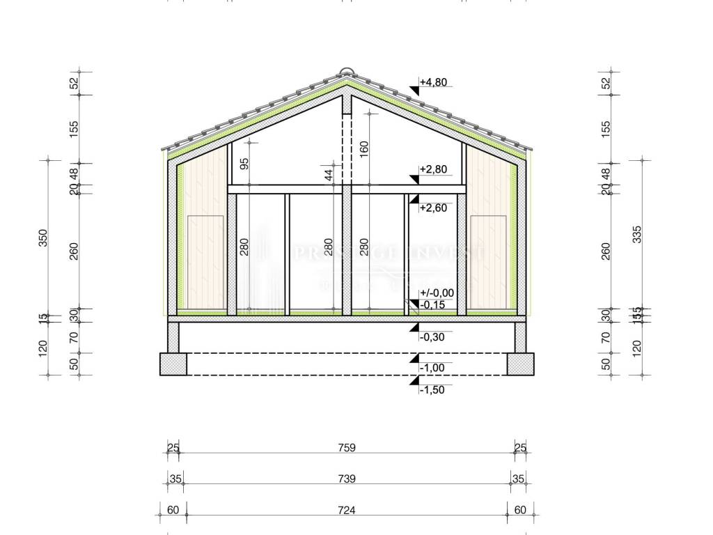 Thermal insulation: 10 cm of rock wool inside + Stirodur 5 cm outside (equivalent to 15 cm of standard polystyrene)