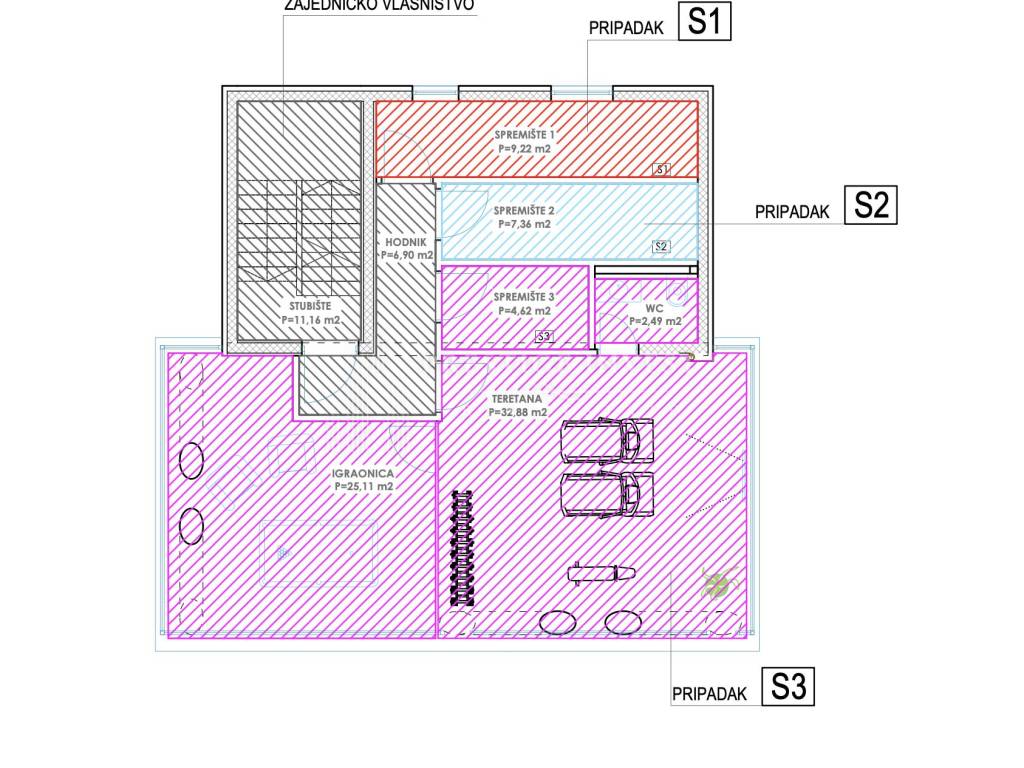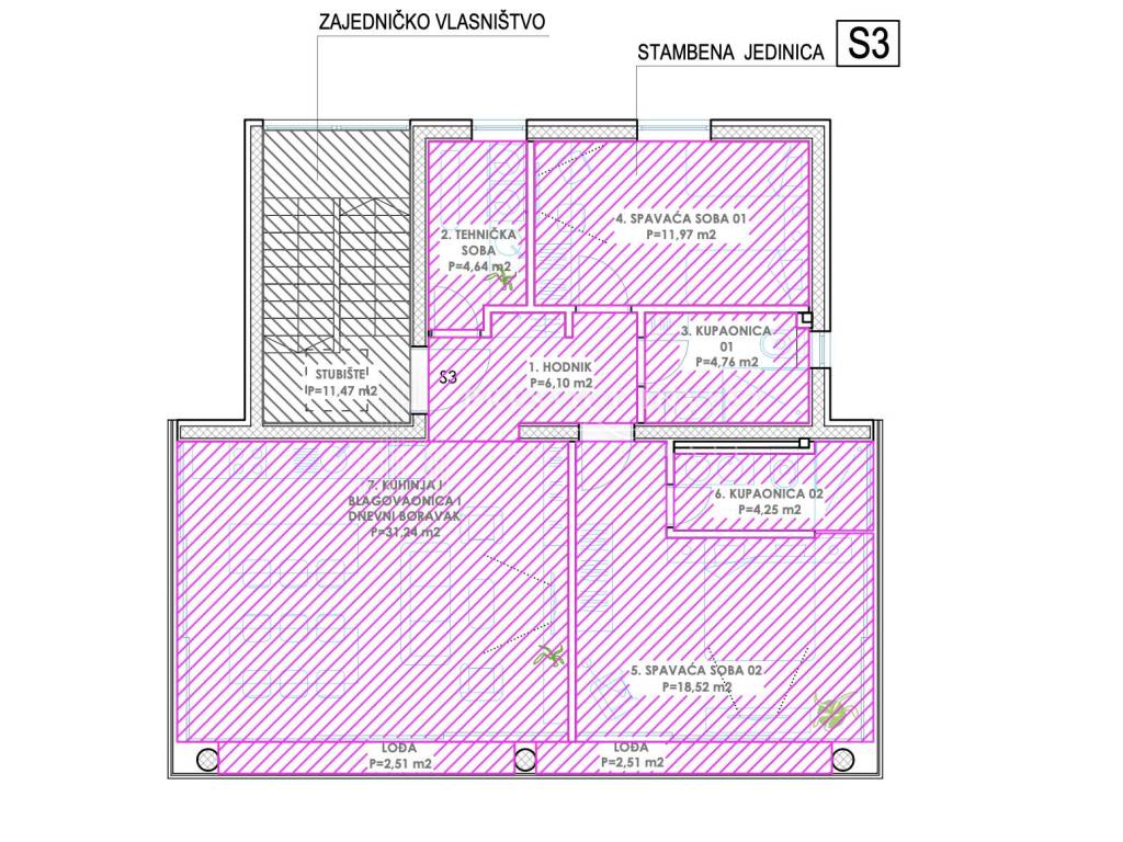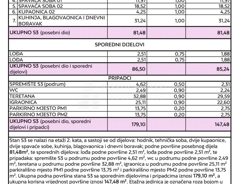Areas Apartment area (separate part): 81.48 m² Loggia 1: 2.51 m² Loggia 2: 2.51 m² Storage room S3 (basement): 4.62 m² WC (basement): 2.49 m² Gym (basement): 32.88 m² Playroom (basement): 25.11 m² Parking space PM1: 13.75 m² Parking space PM2: 13.75 m²