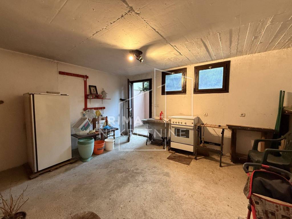 - Auxiliary courtyard building (29.72 m²) which includes a bathroom, kitchen, and a room. The building is prepared for central heating, and is currently heated by an electric radiator and a wood-burning stove. Beneath it is a basement (15.2 m² / NUA 7.6 m²). Next to the building is a large storage shed (21.32 m² / NUA 10.66 m²).