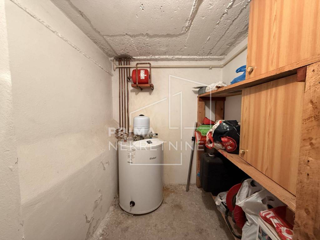 - Large basement (42.88 m² / NUA 21.44 m²) divided into three storage rooms and a boiler room with a central gas heater.