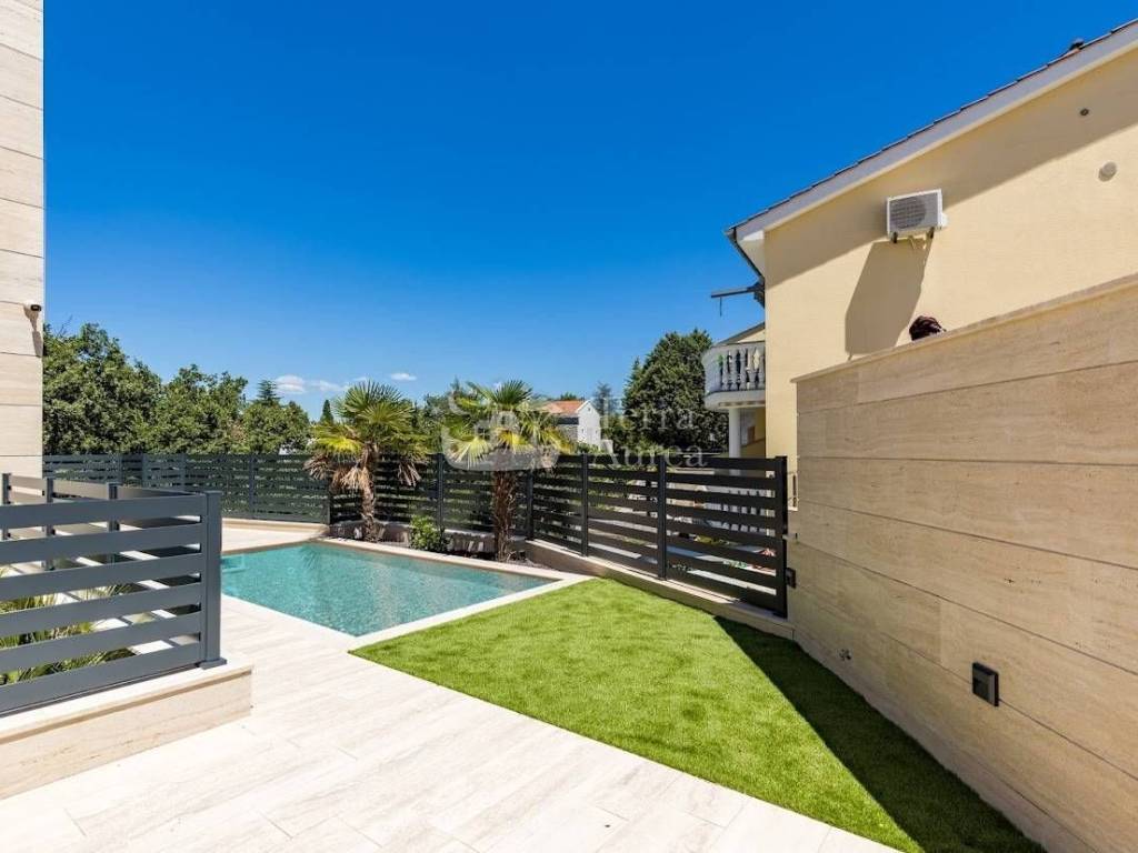 A pleasant area of 113.09 m2 consists of a spacious living room with kitchen and dining room, three bedrooms, the main of which has its own bathroom, one shared bathroom, separate guest toilet and hallway. The living area leads to a beautiful terrace of 25 m2 to enjoy the amazing sea view and enjoy the sun during the day, and the magical sunsets and romantic views of Rijeka at night. Although located on the top floor, the special feature of this apartment is its own garden of 49 m2 with a swimming pool as an additional place to fully enjoy the luxury offered by this top property.