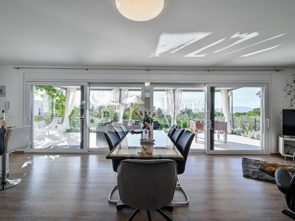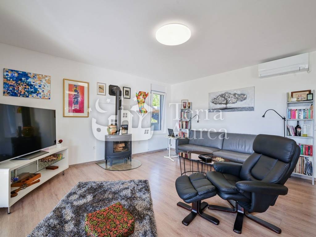 The exterior is largely decorated with a meticulously arranged garden with many Mediterranean plants, where there is a heated pool with a system of counter-current swimming and an infrared cleaning system, which is an ideal place for rest and enjoyment.