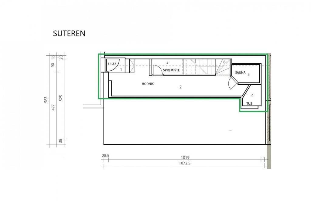Na donjoj etaži se nalazi tuš, toalet i sauna.