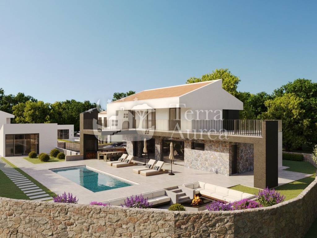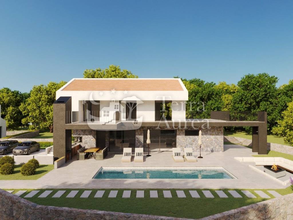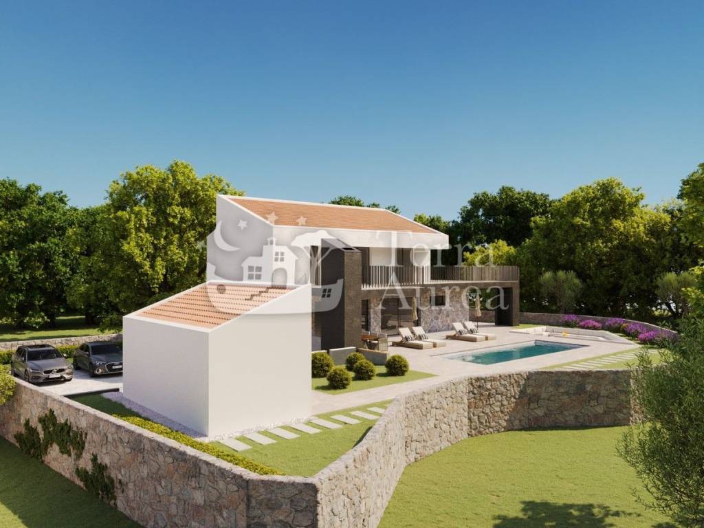 The villa will be equipped with quality joinery, floor coverings made of quality ceramics and stone, top-quality sanitary facilities, ceiling air conditioners and underfloor heating with a heat pump.