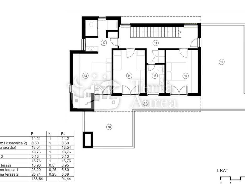 On the first floor of the villa there are 3 spacious bedrooms, one of which has its own bathroom and walk-in shower. The possibility of exiting to the outdoor terrace is from all three rooms, while the remaining two rooms share one bathroom.