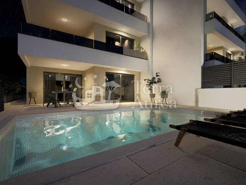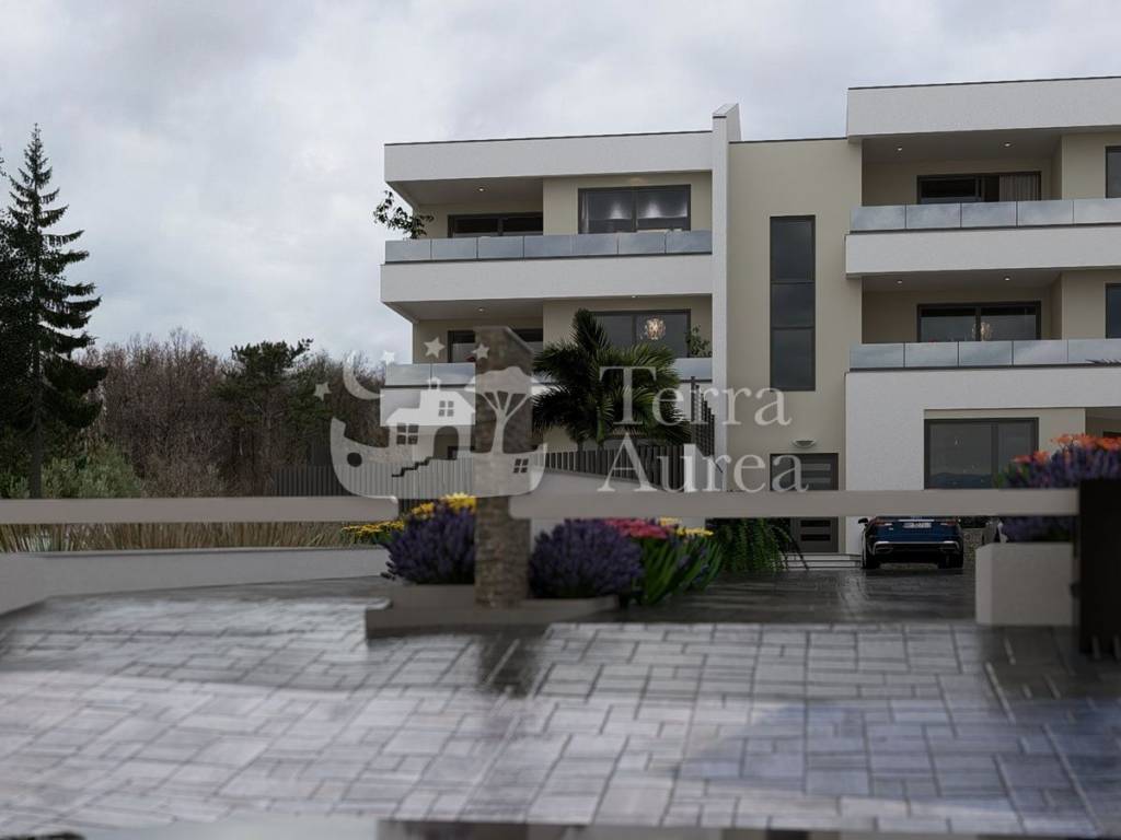 In a quiet and attractive part of Vrbnik, on the ground floor of a modernly designed building that blends perfectly into the natural environment, this exceptional property with a living area of 101.40 m2 is located.