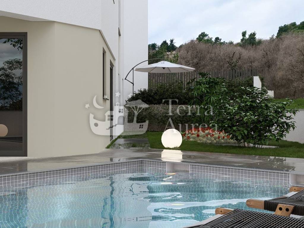 The interior includes a spacious open space living room with kitchen and dining area, ideal for relaxing and socializing, three comfortable bedrooms, two modern bathrooms and an additional toilet. The living room opens onto a spacious terrace with a captivating view of untouched nature - the perfect place for a morning coffee or an evening rest.