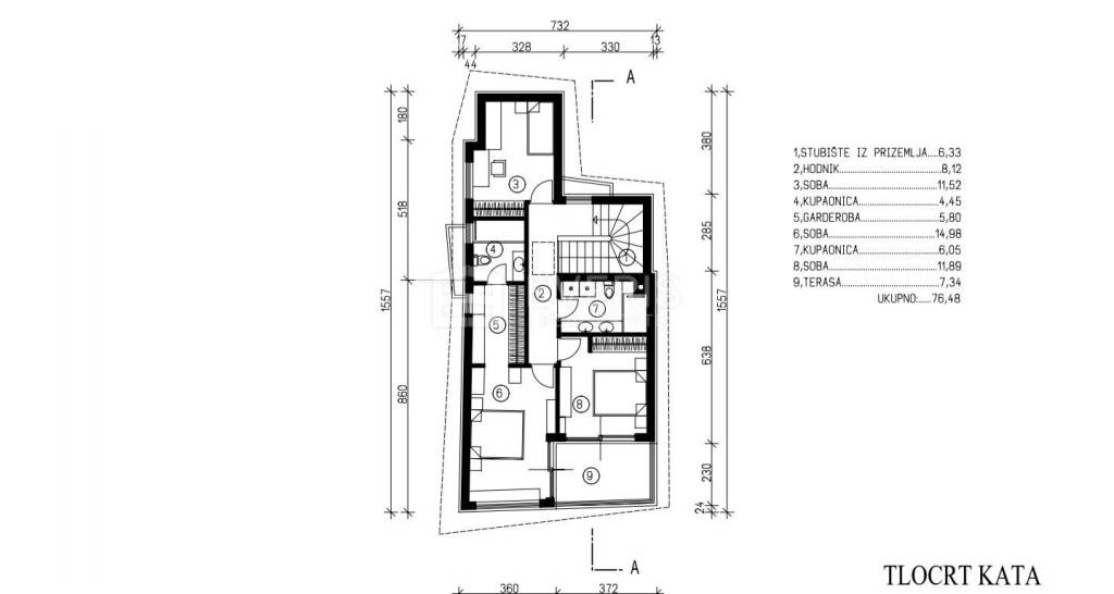 U prizemlju bi se nalazila prva etaža dvoetažnog stana u kojem je planiran otvoreni prostor dnevnog boravka, kuhinje i blagovaonice, radna soba, kupaonice i loggia. Na katu je planirana master soba s garderobom i kupaonicom, dvije spavaće sobe, kupaonica i terasa.