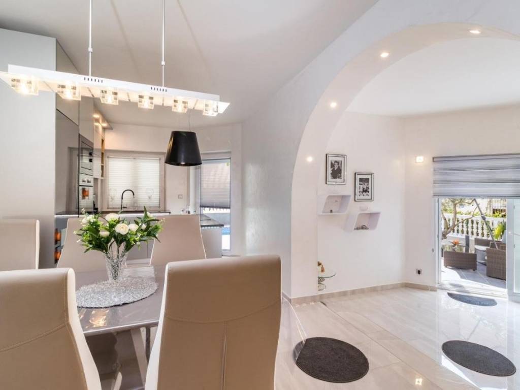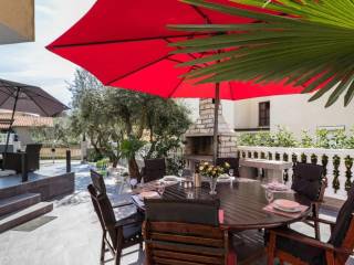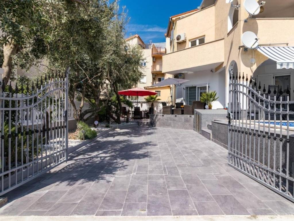 We present to you this comfortable apartment with a swimming pool in a great location in Medulin, only 400 m from the sea. The apartment is located on the ground floor of a building with a total of 5 apartments. The apartment consists of a living room with a kitchen and a dining room, 2 bedrooms, a bathroom, a hallway, a storage room and an adjoining part of the garden (terrace) with a total area of 142.77 m2. From the dining room there is an exit to the terrace where there is a 24 m2 outdoor pool, and next to the pool is a solar shower. . On the other side in the garden, there is a summer kitchen, grill, garden furniture. The apartment is modernly equipped and in a well-established rental business. More on request.