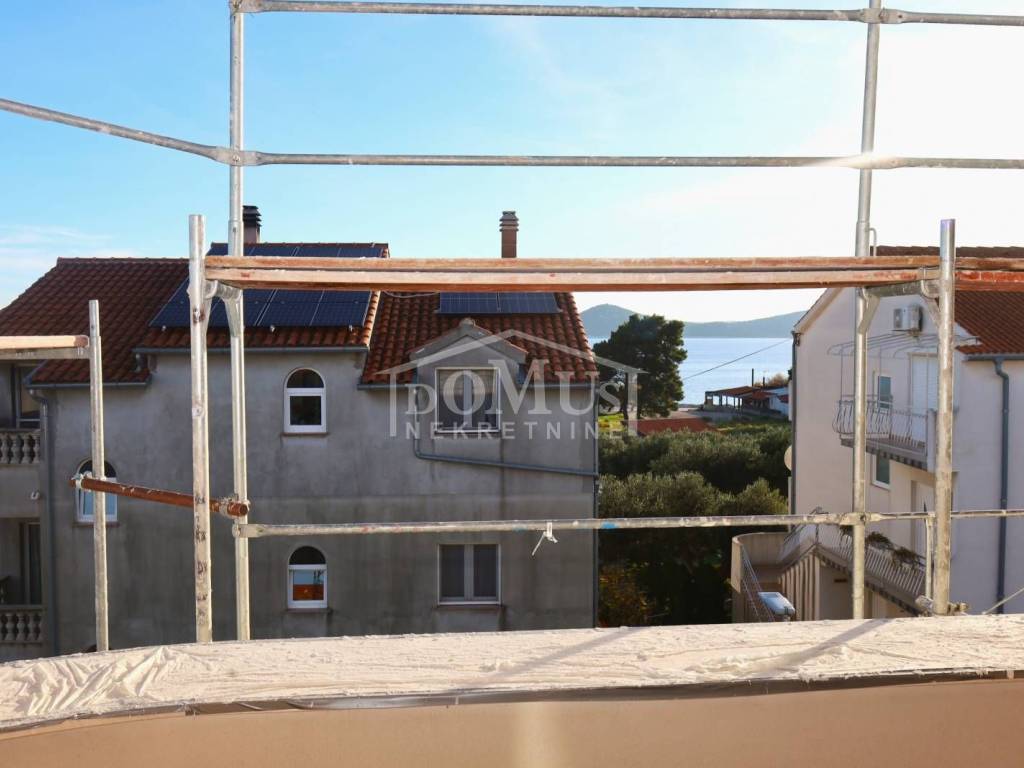 Vodice, near the beach "Plava plaža", there is a newly built residential building with 9 residential units. There are three floors in total: ground floor, first floor and second floor. The building is modernly decorated with underfloor heating, high-quality floors and interior decoration, air conditioners for heating and cooling in every room, and electric blinds.