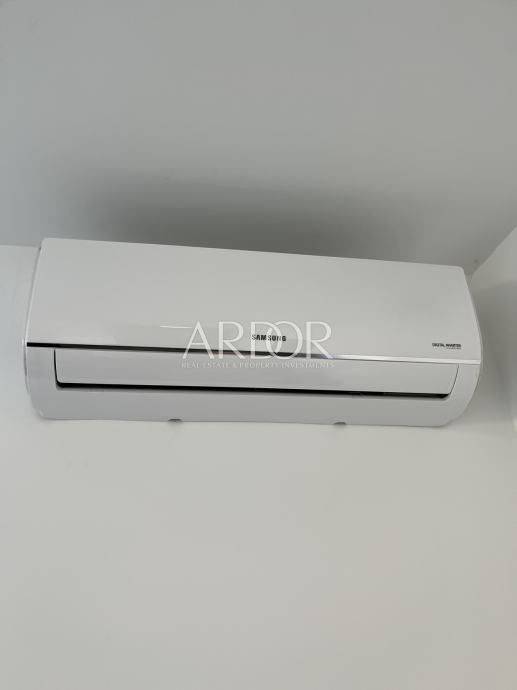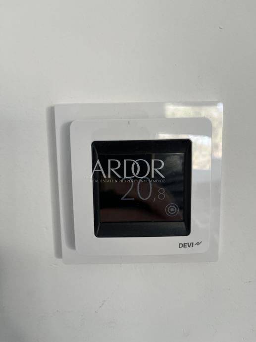 The apartment is fully furnished and equipped, and is sold on a "turnkey" basis. The interior is dominated by light tones and quality materials, while underfloor heating and air conditioning ensure a pleasant temperature throughout the year. Security doors have been installed, and the bathroom is equipped with a shower cabin and modern sanitary ware.