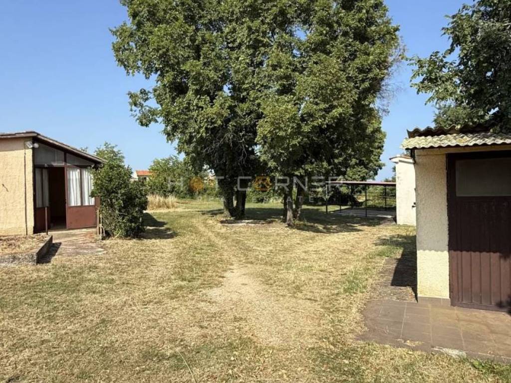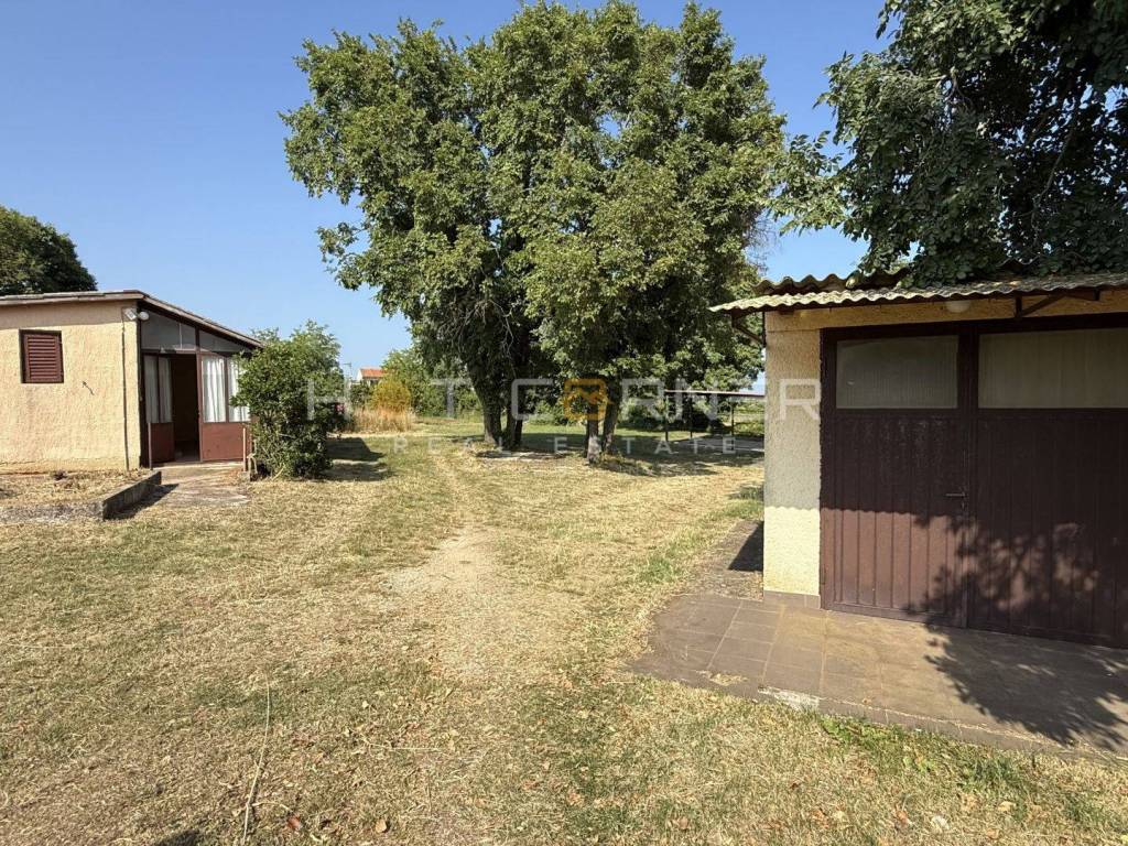 497 m² building land approx. 100 m away, with a garage and a small weekend house (not legalized)