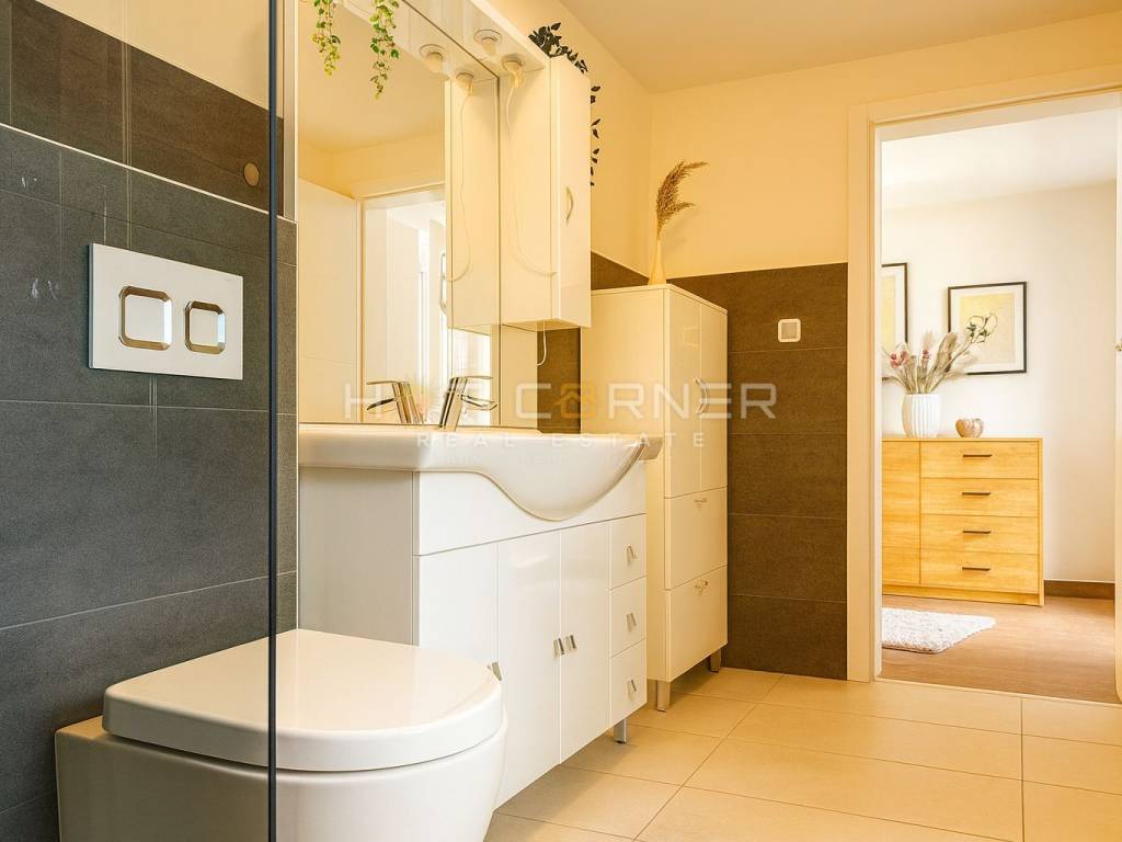 The ground floor features a functional living area with kitchen and dining room, a bathroom, and an additional room used as storage and an entertainment room. The first floor offers three bedrooms and a bathroom, while the attic of approx. 50 m² provides the possibility of creating an additional master bedroom with a private bathroom.