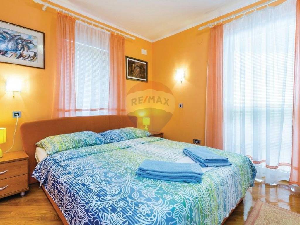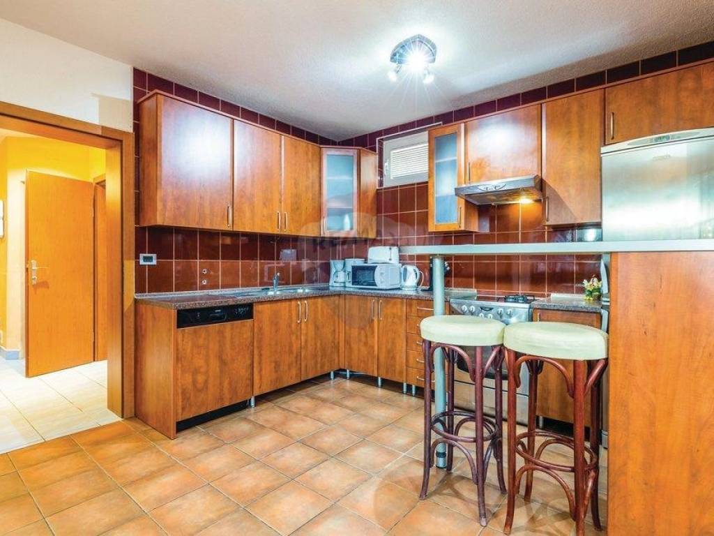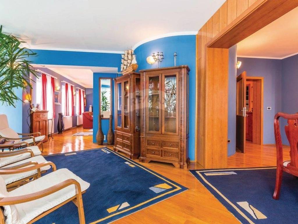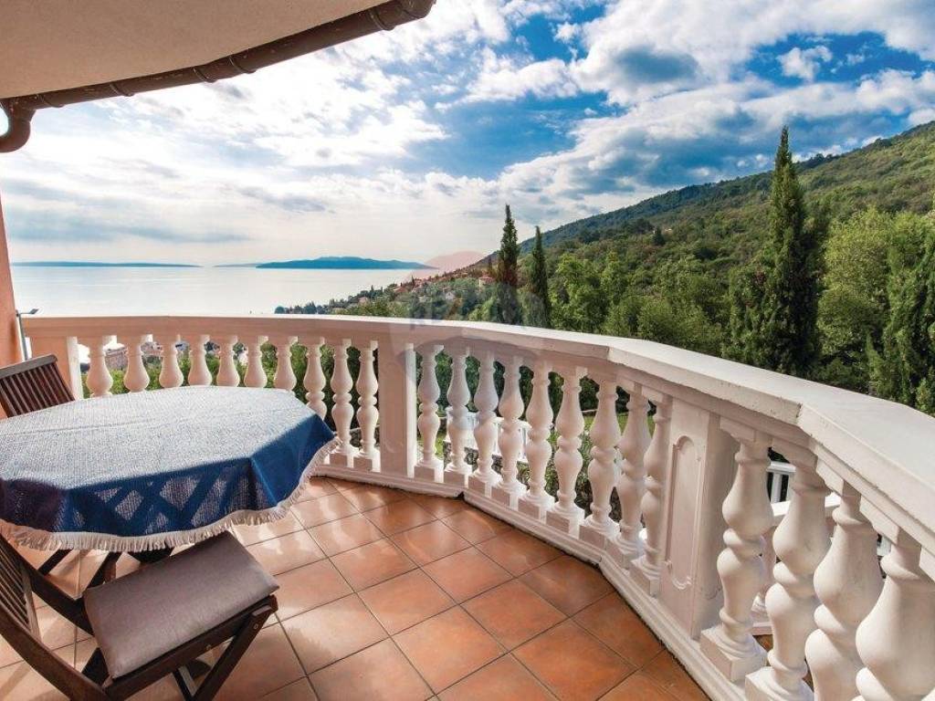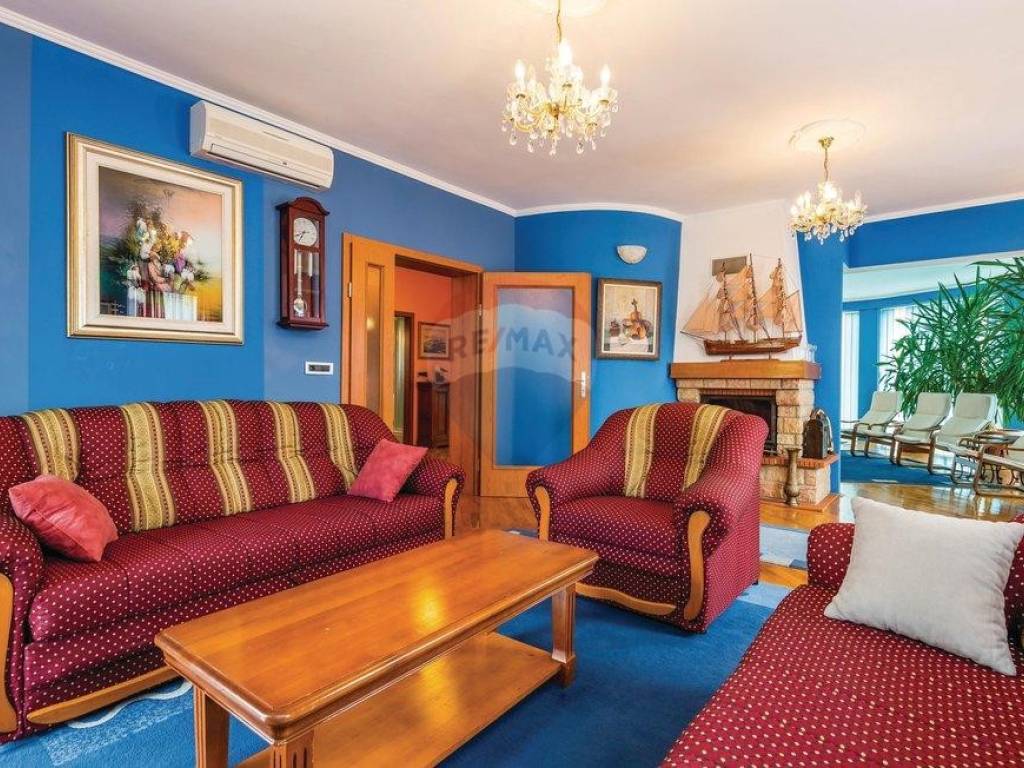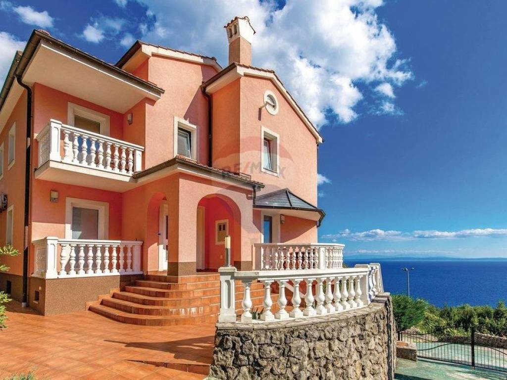 Close to the centre of Opatija, villa with swimming pool and garage. Just 500m from the centre, with an amazing panorama seaview and Kvarner islands. Quietness, peace and full privacy, surrounded by forest. The villa has 3 floors, basement, ground floor and 1.st floor. In the basement are sauna, bathroom with a toilet, wineroom, kitchen, tavern and 2 bedrooms with king size beds. On the ground floor is a spaceous living room, kitchen with a dining room, relaxing room, toilet and 2 terraces. On the first floor are 3 bedrooms, all of them have their own bathroom, king size bed and a balcony. Outside is a heated sqimming pool with a jacuzzi, big fireplace and a table which can be covered. The villa also has a garage with 2 parking spaces.