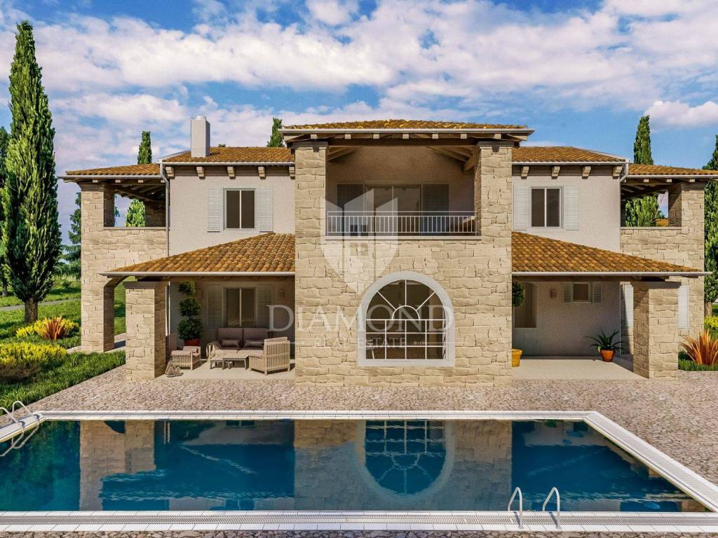 at a distance of about 18 km from Rovinj, the champion of tourism in Istria, there is the charming town of Kanfanar. Its central position in Istria has allowed it to develop unhindered as a tourist center whose accommodation offer mostly consists of luxury holiday homes, while very good traffic connections allow you to reach Rovinj or Poreč as well as Pula in a very short time - which means that the choice is tourist offers are wide and accessible, while the town of Kanfanar itself is full of events during the season. This house, which will be built according to the idea of ​​the Istrian autochthonous stone house, is located only about 2 km from Kanfanar in a quiet place.