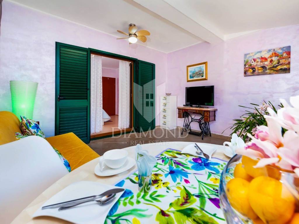 On the ground floor of the house there are two tourist apartments with a living room, a kitchen, a bedroom and with outdoor facilities in the form of a terrace and a summer kitchen. There is also one room with a kitchenette. All units are air-conditioned and decorated and have high occupancy during the summer months.