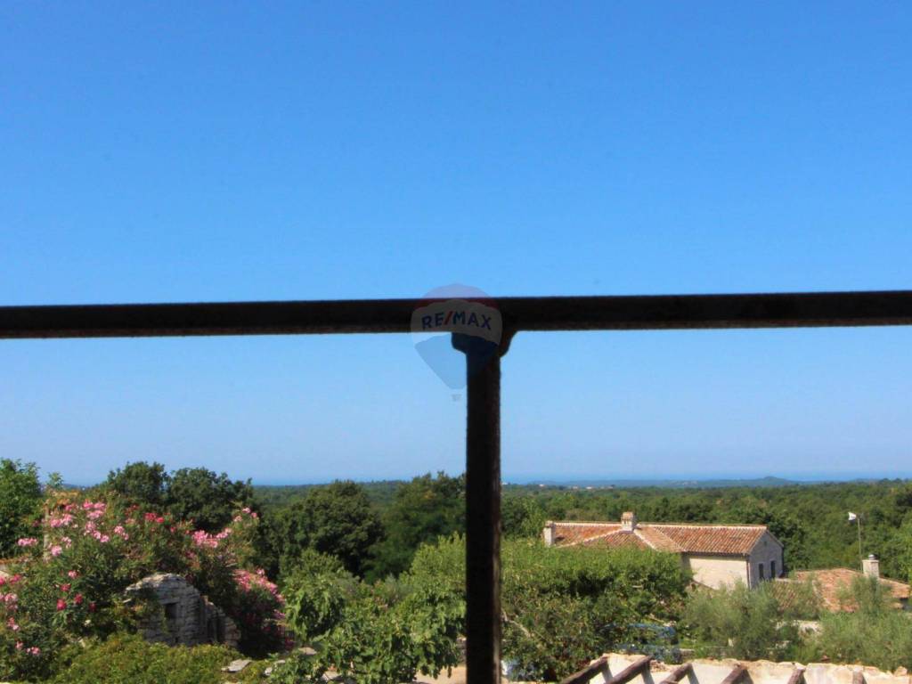 From the top floor there is a view of the sea in the distance.