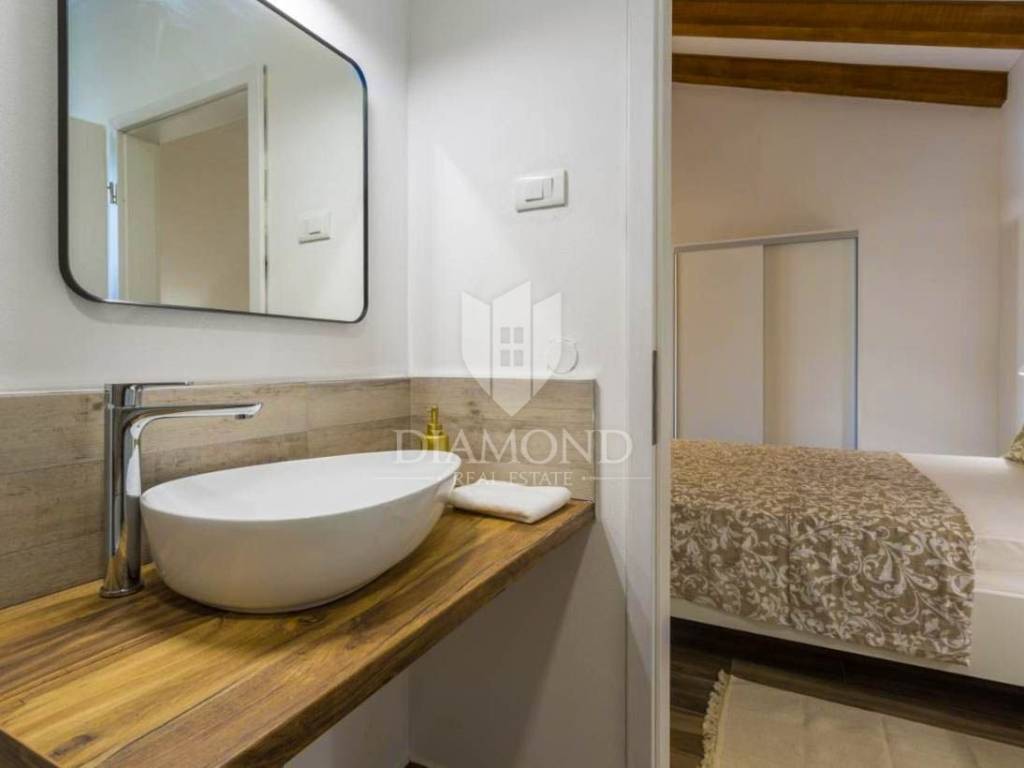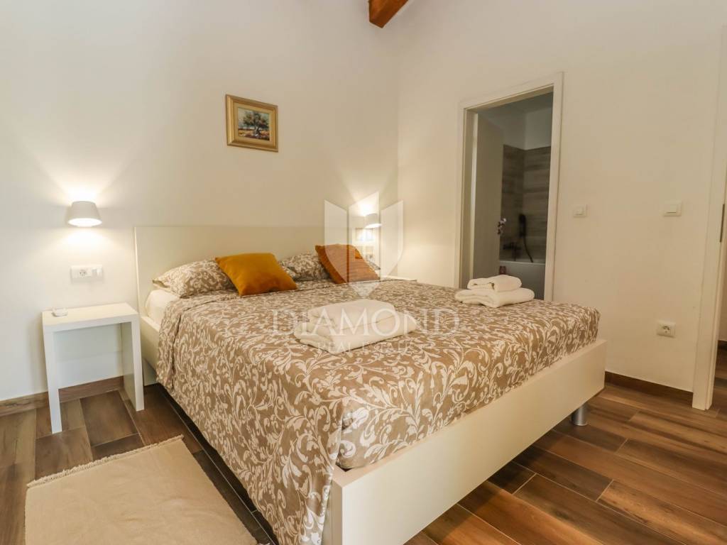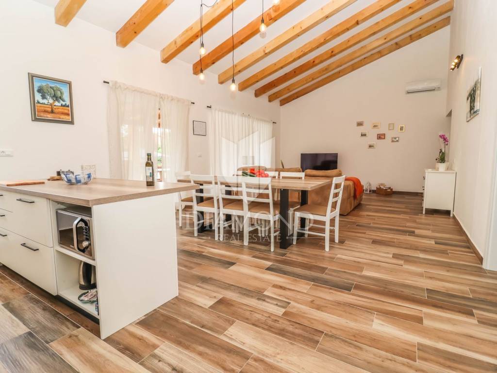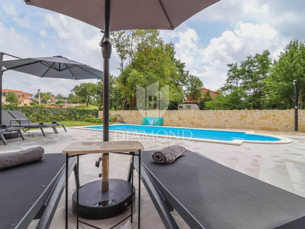 A house with a swimming pool located on the edge of a small autochthonous village in the municipality of Žminj sounds like an idyllic place for relaxation and a peaceful life. Its position on the edge of the village provides peace and privacy, while all the necessary facilities such as shops, pharmacies and others are only a few minutes' drive away. In addition, the proximity of larger cities such as Rovinj and Pula, which are about 20 kilometers away, enables easy connection with the various facilities and offers of these larger urban areas.