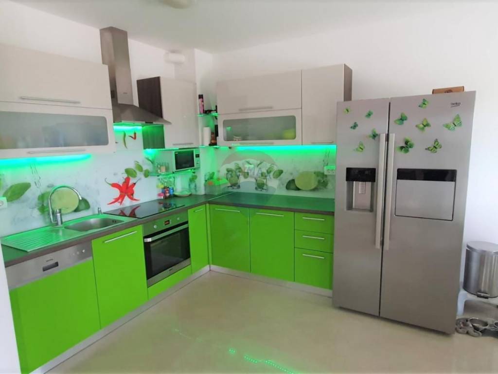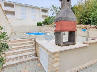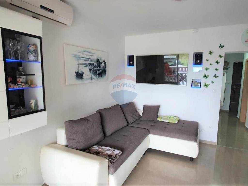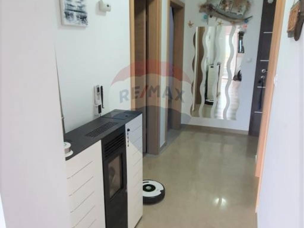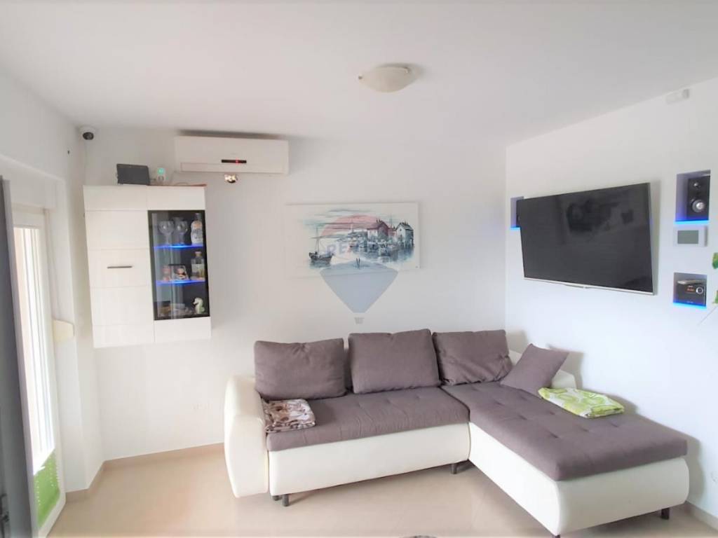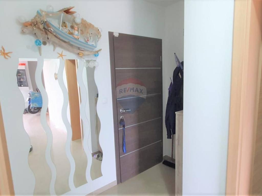 We are selling an apartment with two bedrooms, bathroom, kitchen, dining room and living room. From the living room there is access to the southern balcony with a view of the sea. The owned apartment has one parking space, and the swimming pool and sunbathing area are shared with other tenants in the building. The apartment is air-conditioned and has a pellet stove. It is located in a quiet location, surrounded by a green area, about 550 m from the sea. The documentation is in order.